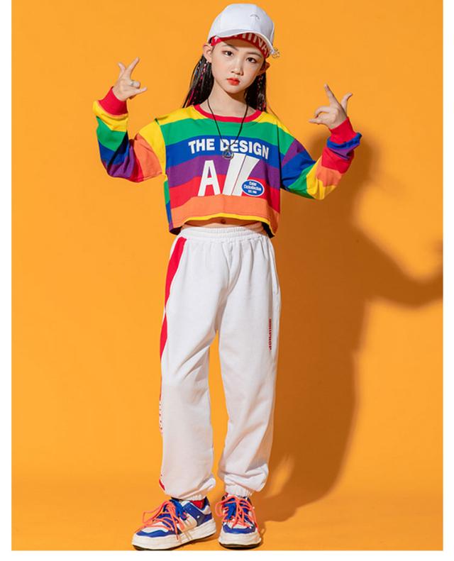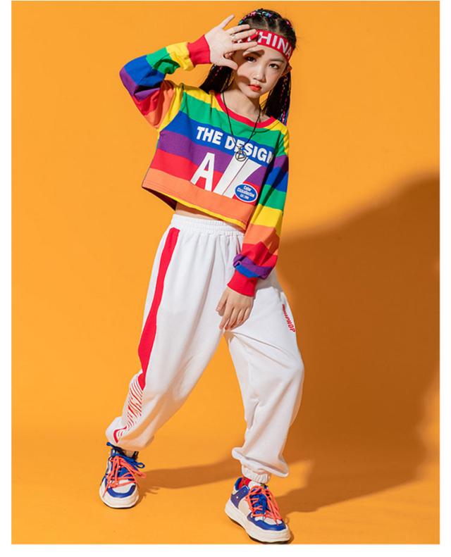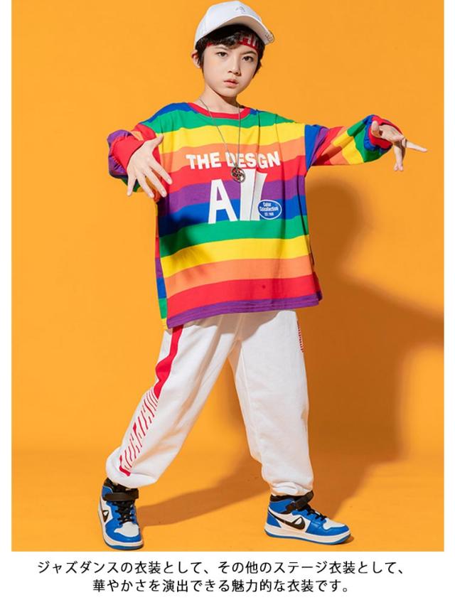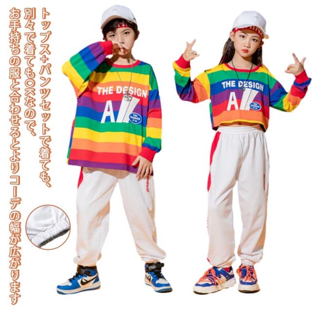 ロングズボン ゆったり セットアップ カジュアル キッズダンス 衣装 発表会 ヒップホップ パンツ カラフル キッズダンス 女の子 ガールズ 練習着 子供服 演出服 韓国 ダンスウェア ストリート オシャレ ストリート 110 120 130 140 150 160 170