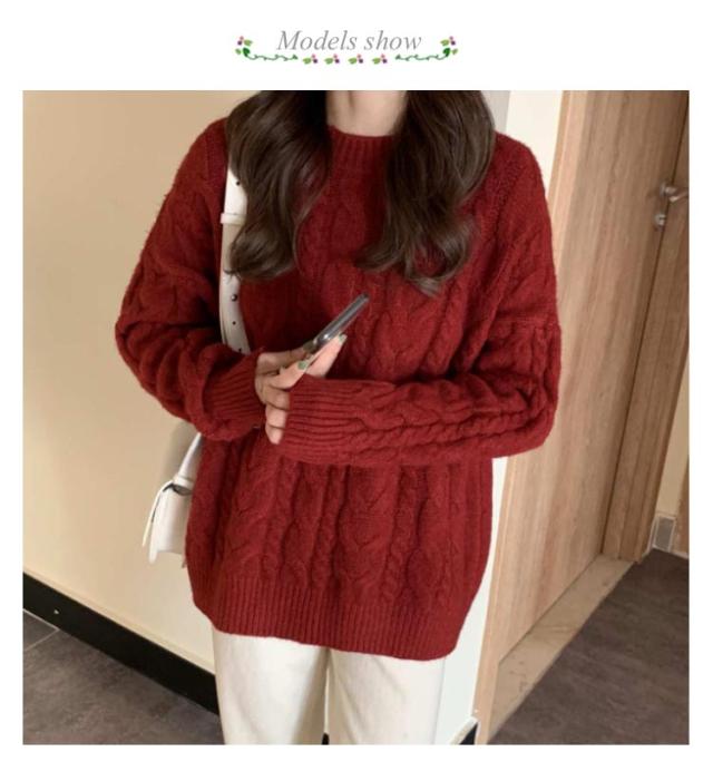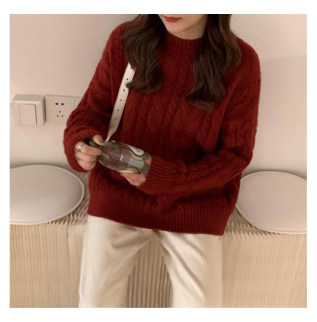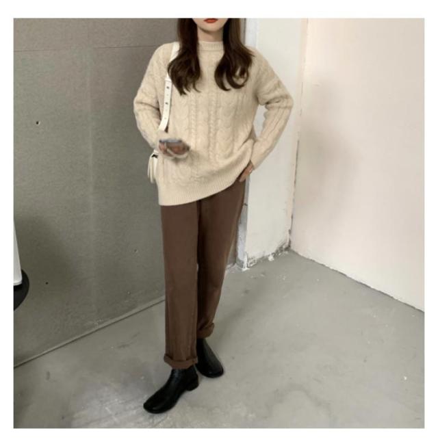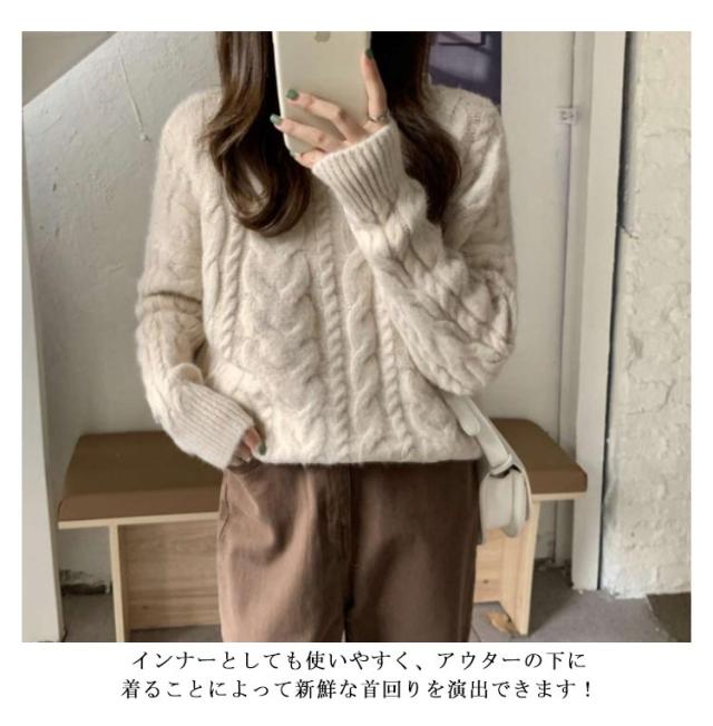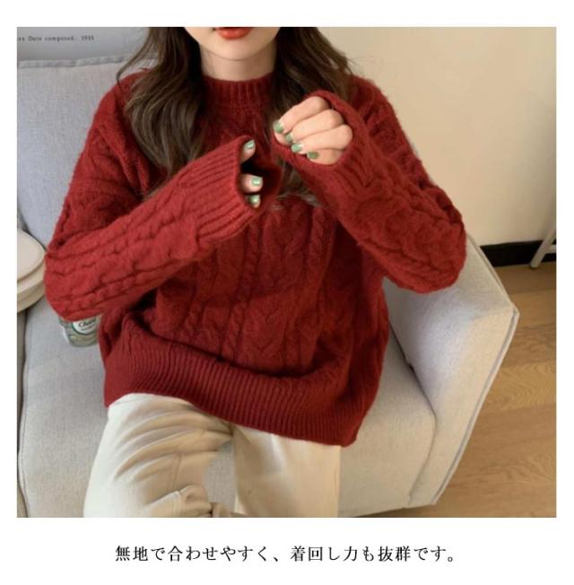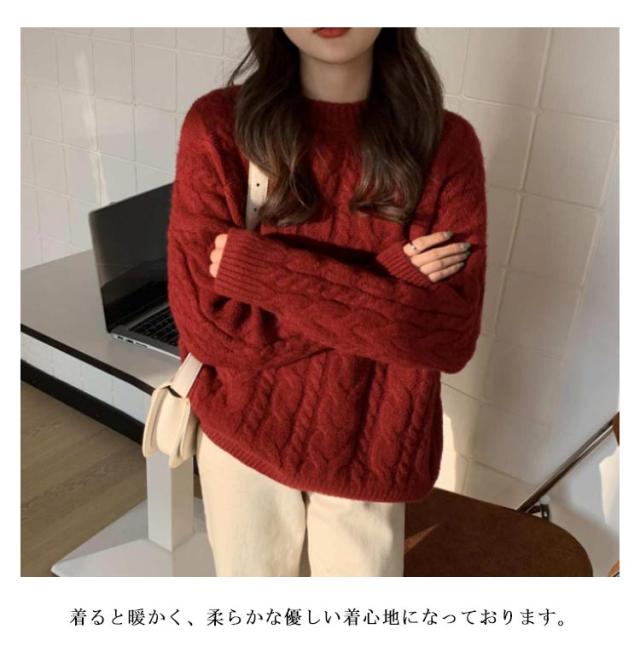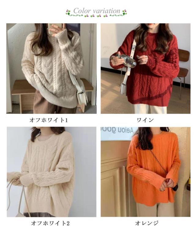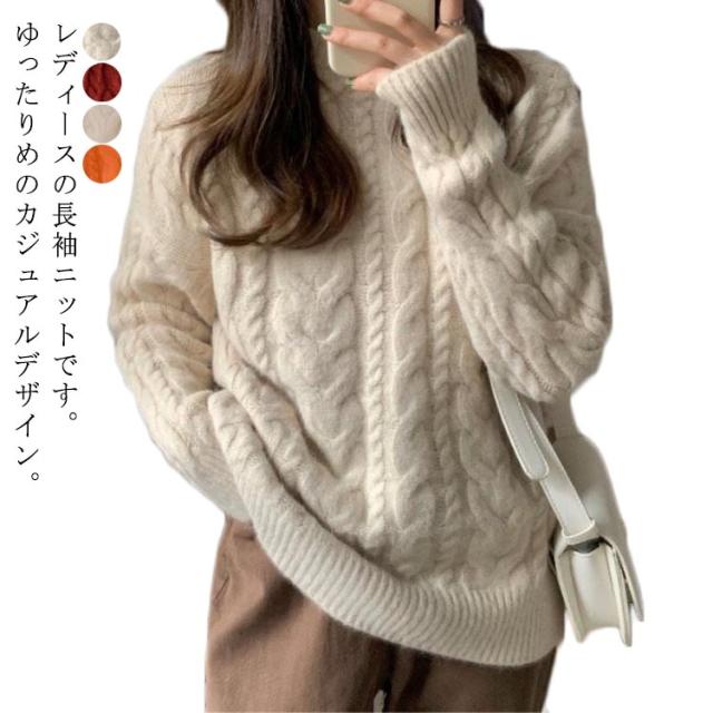 ニット レディース ケーブル編み トップス ケーブルニット ニットセーター 防寒対策 セーター リブ袖 クルーネック 保温 暖かい ニットセーター 秋冬 カジュアル シンプル 大きいサイズ おしゃれ 長袖 通勤 通学 韓国ファッション S/M/L/XL