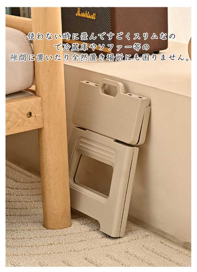 | 簡単に広げればどこでも使える、便利な折りたたみ踏み台。 踏み台はもちろん、椅子としても使えるお家に一台あるととっても便利スツール。 脚の底には滑り止め付きの安心設計。体重をしっかり支えます。 使わない時に畳んですごくスリムなので冷蔵庫やソファー等の隙間に置いたり全然置き場所にも困りません。 | |