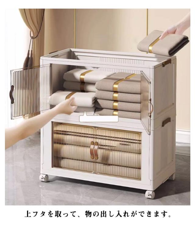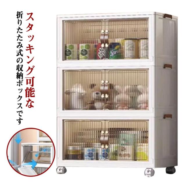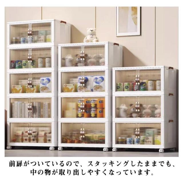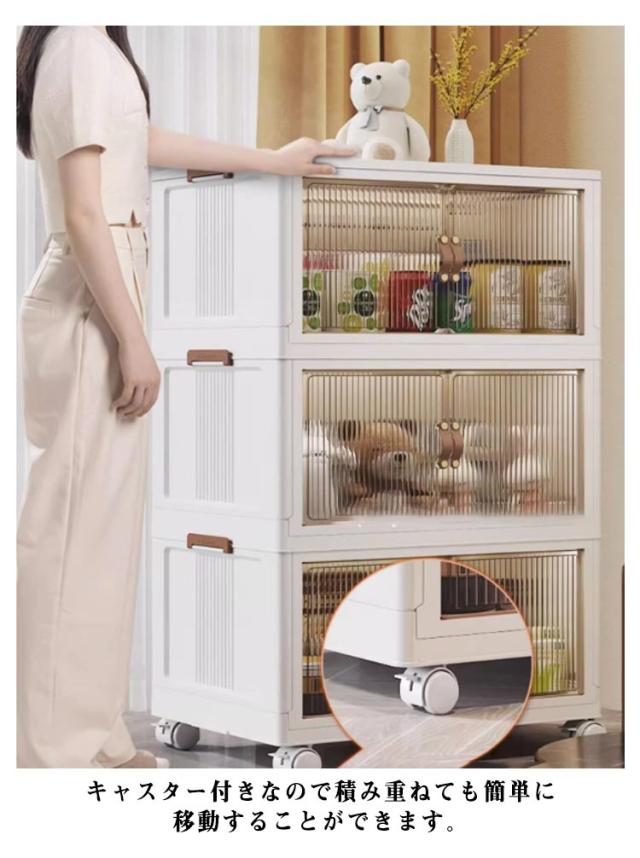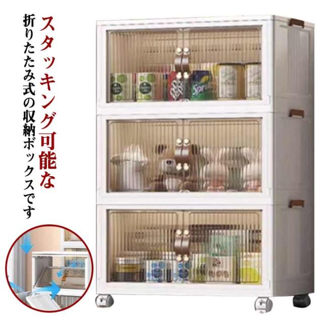 折りたたみ 幅57cm 中身が見える 収納ボックス キャスター付き 折りたたみ 前開き 収納ケース ワンタッチ 大容量 3段 積み重ね 透明 収納箱 衣類 小物