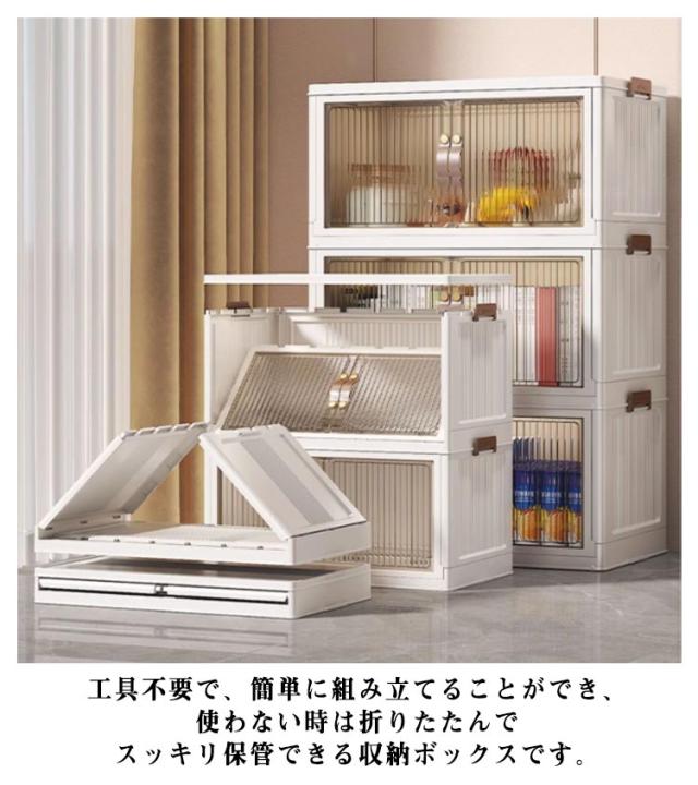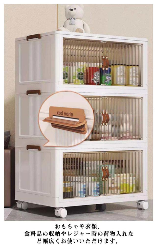 | ・スタッキング可能な折りたたみ式の収納ボックスです。 ・前扉がついているので、スタッキングしたままでも、中の物が取り出しやすくなっています。 ・上フタを取って、物の出し入れができます。 ・キャスター付きなので積み重ねても簡単に移動することができます。 ・おもちゃや衣類、食料品の収納やレジャー時の荷物入れなど幅広くお使いいただけます。 ・工具不要で、簡単に組み立てることができ、使わない時は折りたたんでスッキリ保管できる収納ボックスです。 | |