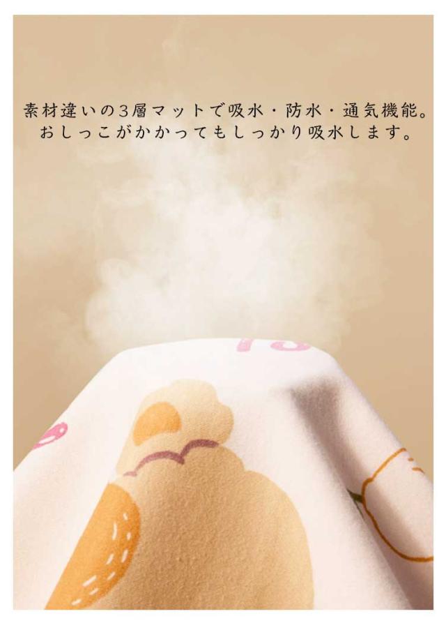 | おむつ替え時もストレスフリーでできる、防水おむつ替えシート! 70×80cm 素材違いの3層マットで吸水・防水・通気機能。おしっこがかかってもしっかり吸水します。 表面は手触りのよい綿素材を採用、夏場でもべたべたせず、赤ちゃんも快適です。 防水生地を採用し、水分を床に通しません。汚れたらご家庭の洗濯機で丸洗いできるのでいつでも清潔にご使用いただけます。 折りたたむとコンパクトになるからポーチやバッグに入れて持ち運びができ、外出先でも困りません。 | |