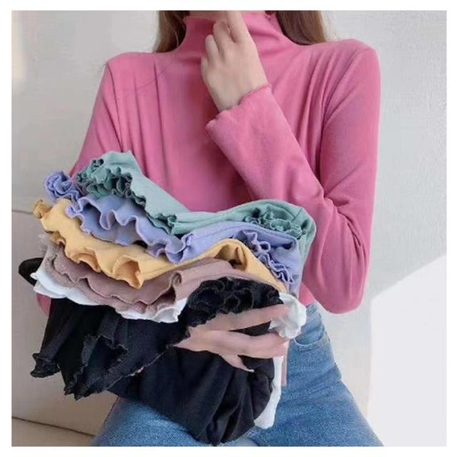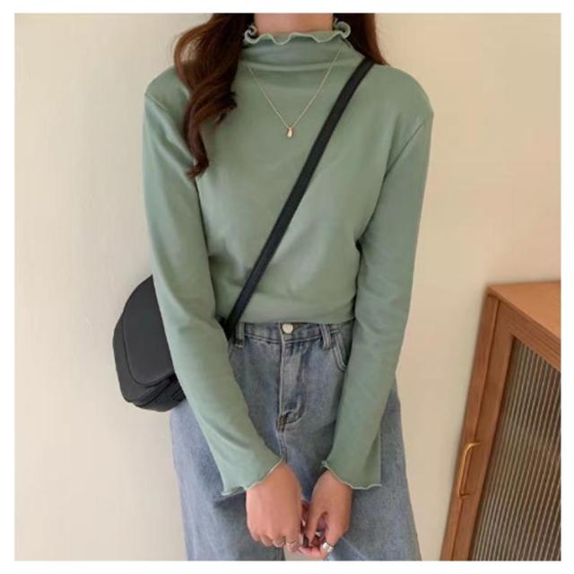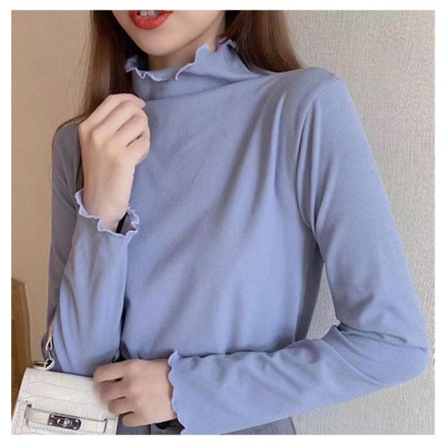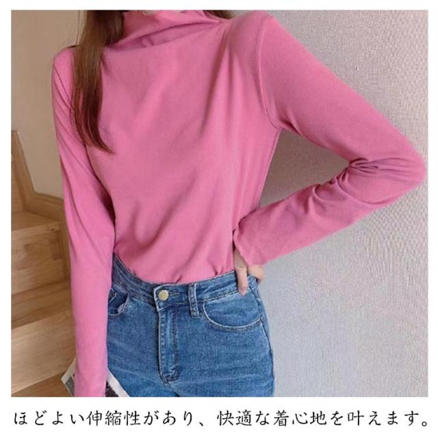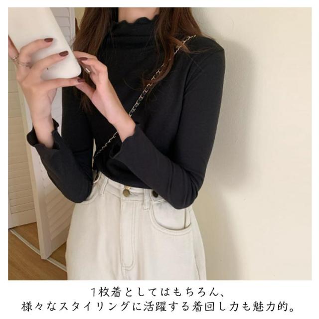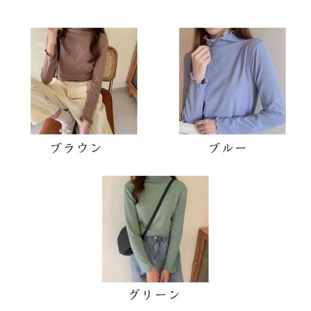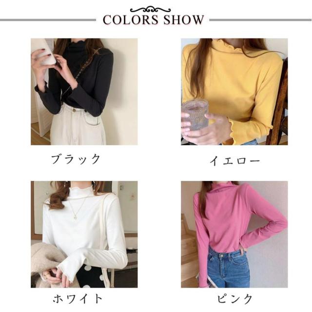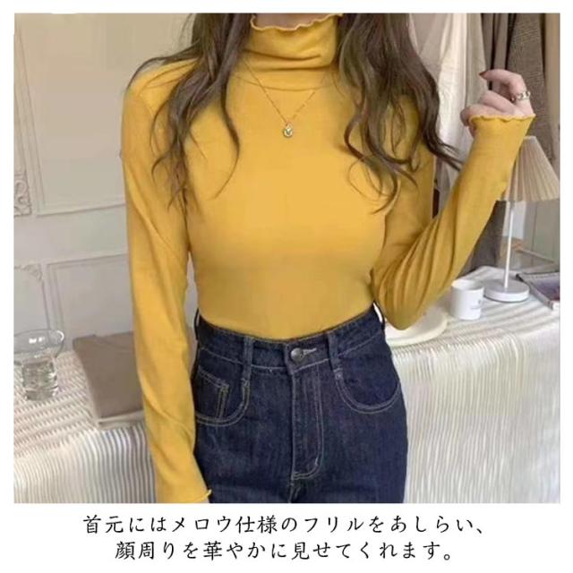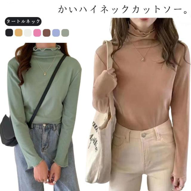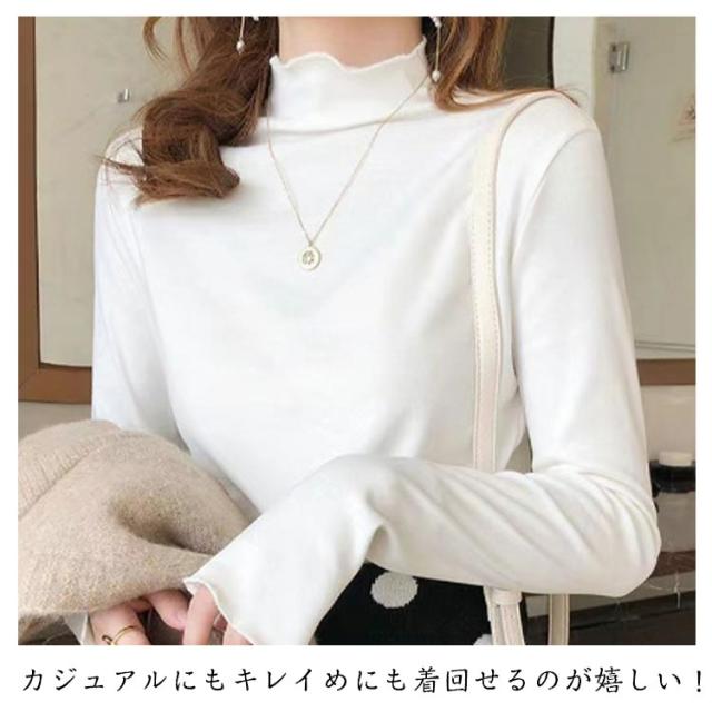 カットソーレディース ハイネック フリル 長袖 トップス 秋冬 あったか 防寒 インナー タートルネック メロウ Tシャツ 無地 重ね着 レイヤード 春 秋 冬 秋服 冬服 送料無料