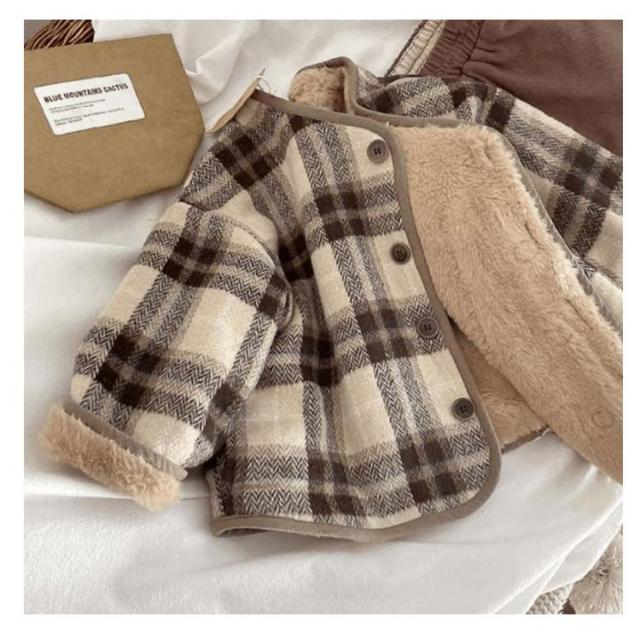 モコモコ アウター チェック柄 裏起毛 キッズ コート キッズ ジャケット あたたかい 上着 女の子 防寒 冬服 ノーカラー 長袖 子供服 羽織り キッズ服 フードなし 男の子 ベビー 子供 秋服 秋冬 防寒アウター おしゃれ かわいい 80 90 100 110 120 130