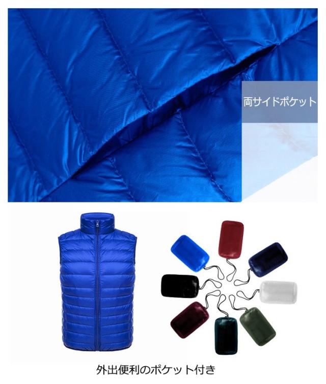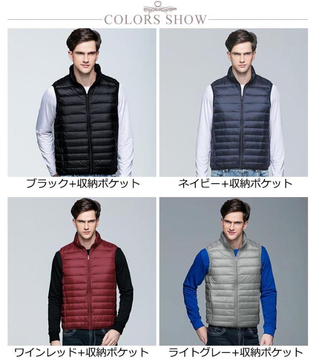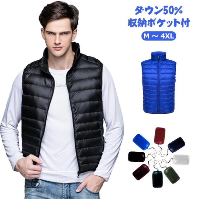 ジレ 大きいサイズ 立ち襟 メンズ メンズ ショート インナーダウンベスト 軽量 ダウン インナー スリム 収納ポケット付 ポケット付き スタンドカラー インナーベスト ファスナー ダウン50% 薄手 秋冬 防寒 保温 あったか