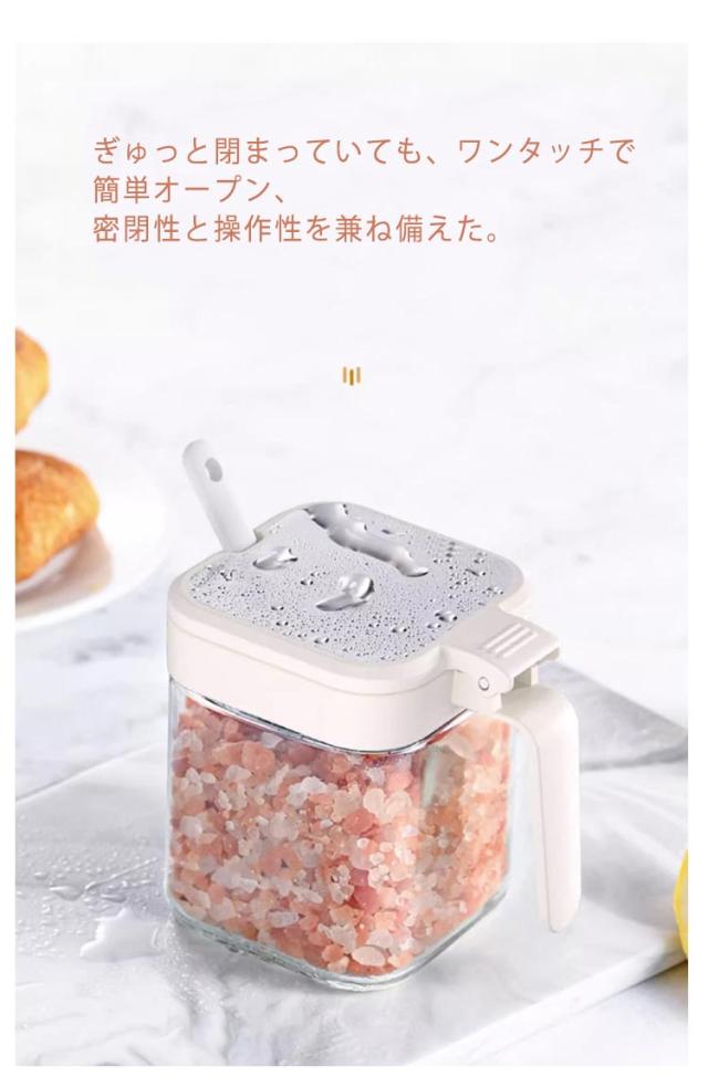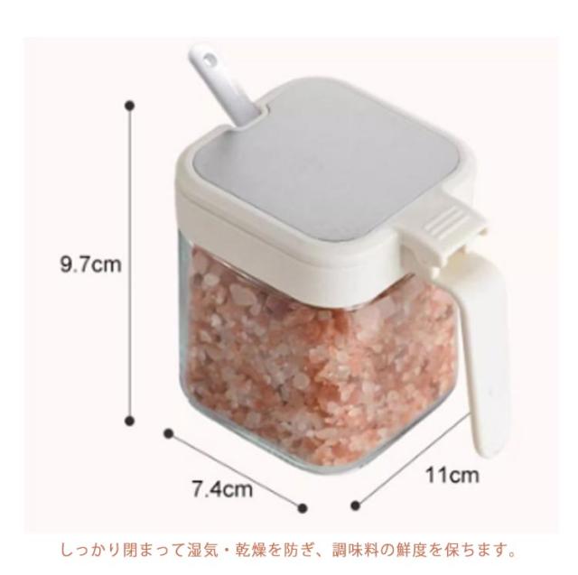 使いやすい 調味料ポット 調味料入れ ガラス スプーン付 砂糖ケース 調味料ボトル 3個セット 塩入れ 砂糖入れ 調味料ケース 保存容器 粉末調味料 ラック付き 密閉ポット ワンプッシュ キッチン収納 防湿 キッチン用品 家庭用