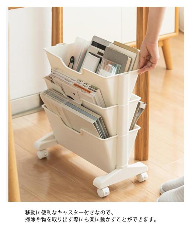 2段/3段 マガジンラック 雑誌収納 スリム ファイルワゴン キャスター キャスター無し 両面 新聞収納 新聞ラック 文房具収納 棚 移動 小物収納 ファイル立て 書類整理 収納棚 本収納 ファイルワゴン デスク下収納 ファイルワゴン テレワーク 北欧 おしゃれ 省スペース
