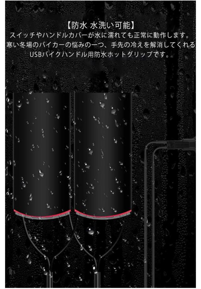 | 【指先の冷え対策】バイク、自転車、オートバイに乗る人にとって、冬のシーズンになると、いくら厚い手袋をはめても寒い風で手が冷たくなり辛くなると、ツーリング、サイクリングを純粋に楽しめない。そんな時におすすめは、このグリップヒーター! 【すぐに暖かい】加熱が早く、熱が均一に広がります。消費電力が低く、使用寿命も長いです。また、本製品は大発熱シートを採用しているので発熱面積が大きく、発熱速度が速いです。 【三段階の温度調整】3段階の温度調整ができるので、気温等に合わせてお好みの暖かさに調整できます。スイッチ付きで手元でのオンオフ切り替え可能! 【防水 水洗い可能】スイッチやハンドルカバーが水に濡れても正常に動作します。寒い冬場のバイカーの悩みの一つ、手先の冷えを解消してくれるUSBバイクハンドル用防水ホットグリップです。 【USBポート 簡単便利】USBポートに直接挿入して使用することができ、簡単に使用できます。マジックテープを巻きつけて貼れば装着できます。通勤通学やフードデリバリー、サイクリングなど幅広い用途で活躍します。 | |