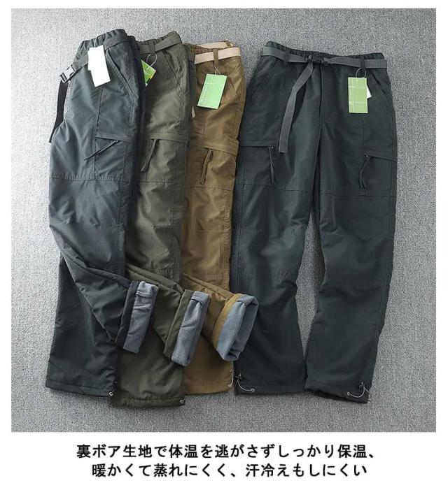 メンズ 裏ボア 防寒パンツ 防水 カーゴパンツ ズボン 暖かい ロングパンツ 保温 作業着 撥水 イージーパンツ 作業服 防風 アウトドア 中綿パンツ 防寒 登山 キャンプ 釣り スポーツ ゴルフ 秋冬 カジュアル