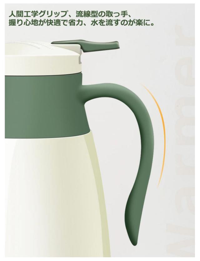 | 1L/1.2L/1.5L/1.8L/2.1L お手入れにも便利なハンディタイプのまほうびん。 まほうびん構造だから電気を使わず、保温・保冷で1年中大活躍。 人間工学グリップ、流線型の取っ手、握り心地が快適で省力、水を流すのが楽に 銀メッキのガラス製裏部分、二層真空技術で保温効果を大幅にアップ、多層温度ロック、より強い保温性能、暖かさの持続性も抜群 | |