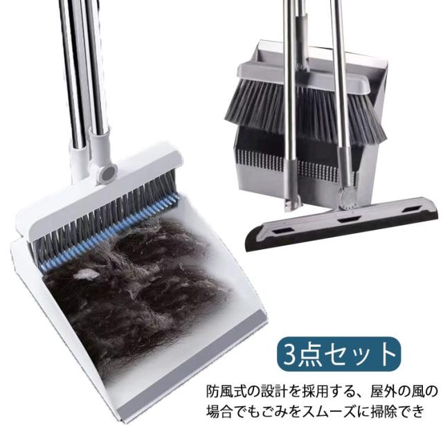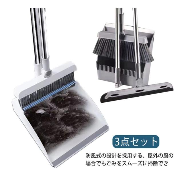 ほうき シリコンほうき 3点 玄関ほうき ドライワイパー 自立式 清掃 180°調節 乾湿掃除 掃除道具 ちりとり ゴミ取りくし 箒 水切りほうき 水拭き 毛取り 立て収納 ほうき 掃き掃除 抜け毛 犬の毛 猫の毛 髪の毛 手汚れず 室内
