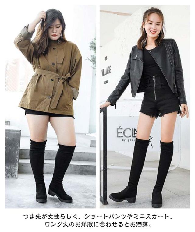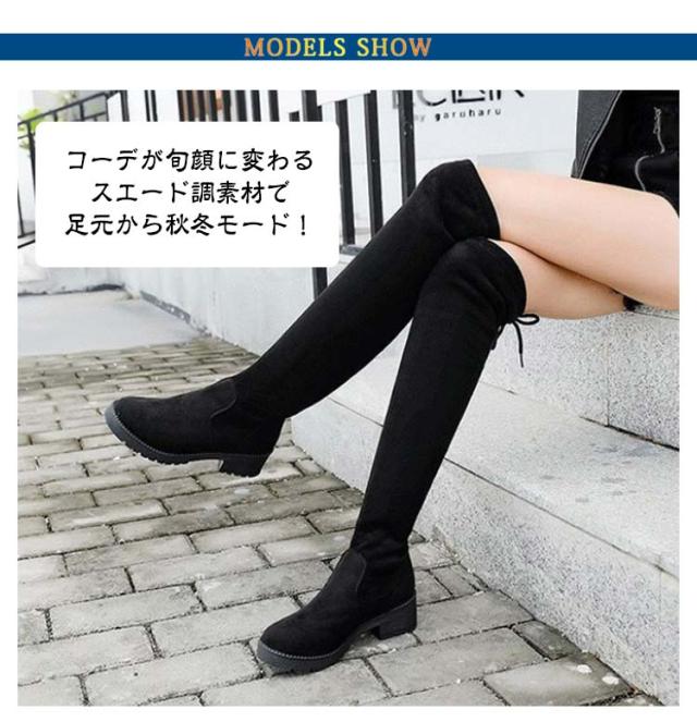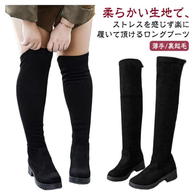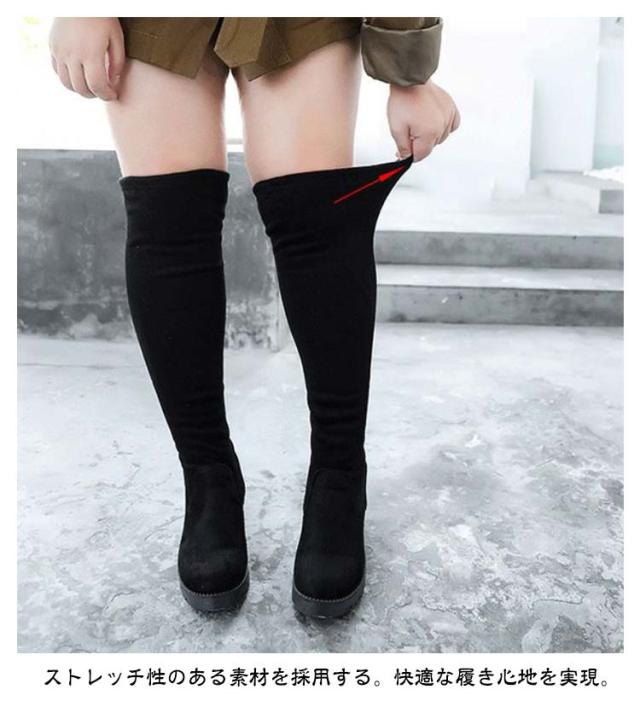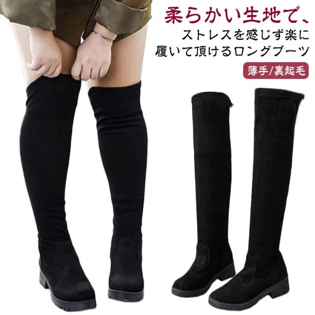 レディース 疲れない 秋冬 ストレッチブーツ 歩きやすい ロングブーツ 美脚 大きいサイズ ストレッチ 靴 ロングブーツ ニーハイブーツ 細見せ 伸縮性 黒 ブラック スエード調 ファッション カジュアルシューズ 痛くない 膝上 通勤 通学 ギフト 送料無料 ブラック