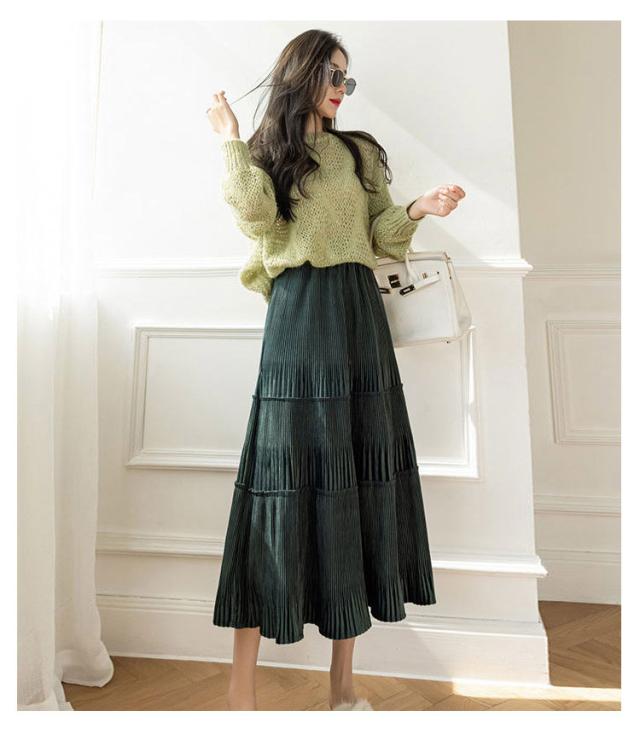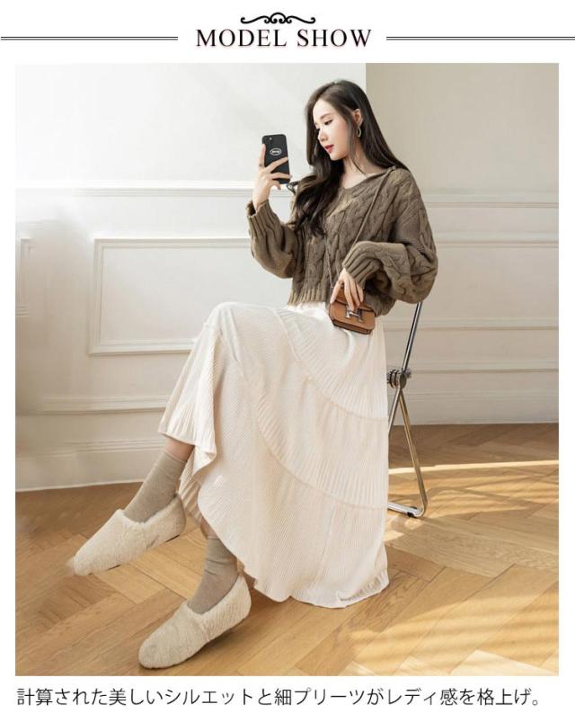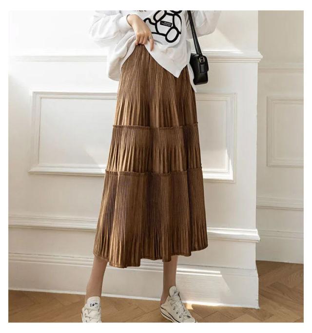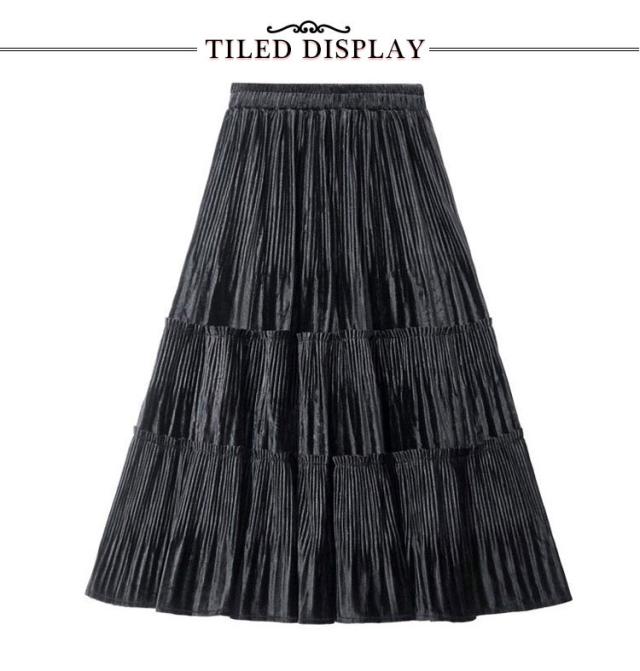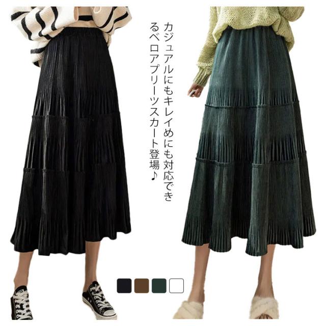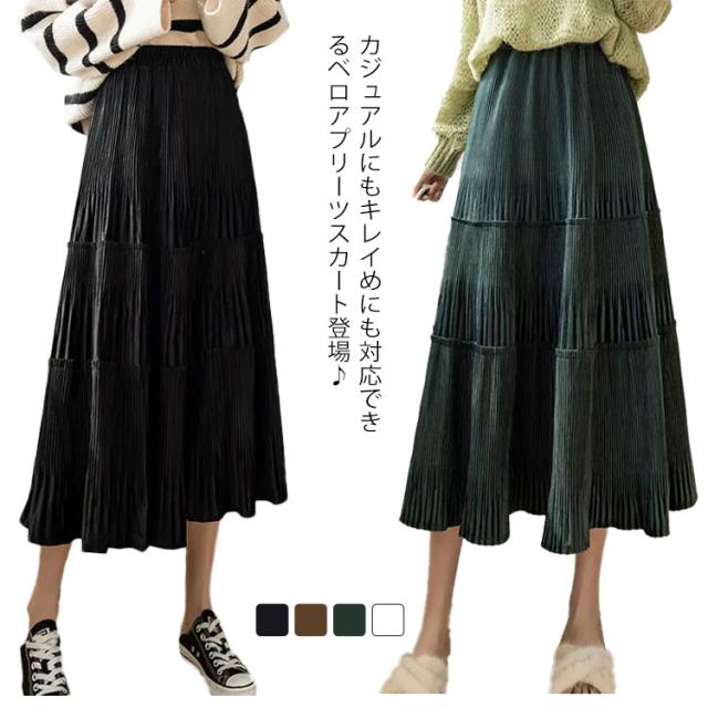 ロングスカート ベロア ベロアスカート 切り替え ベロア プリーツスカート スエード プリーツ レディース ボトムス ティアード ミモレ丈 シンプル 無地 大人 体型カバー フレア ウエストゴム 送料無料