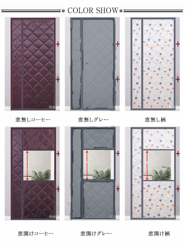 | 幅 80/85/90/95 cm 窓付き&窓なしの2タイプ 厚地中綿入りでしっかり遮断! 操作簡単! | |