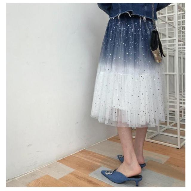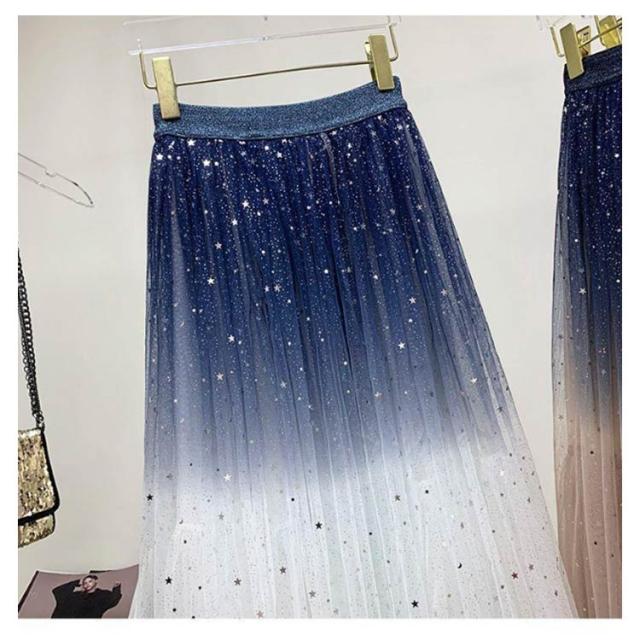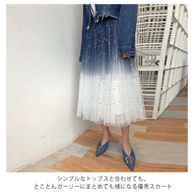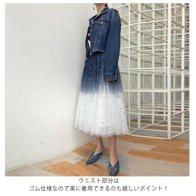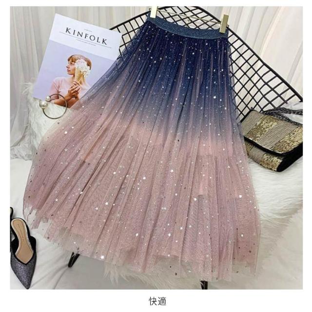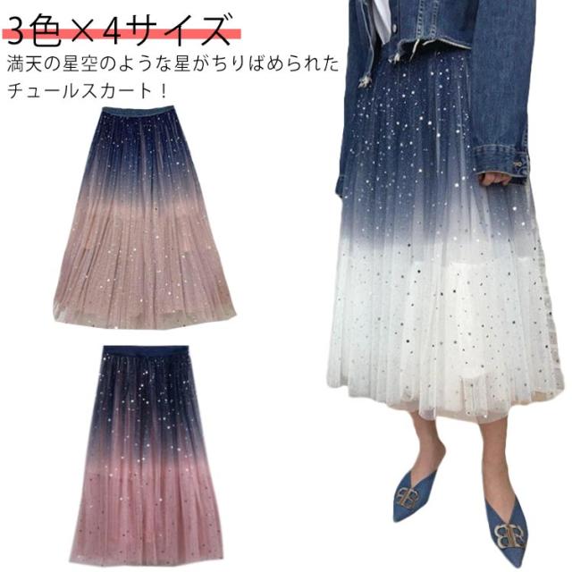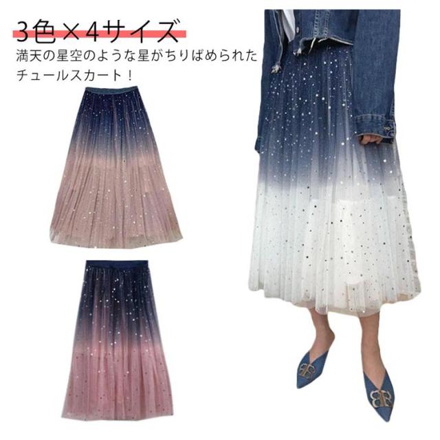 ミモレ丈 ミモレ丈 チュールスカート 星空 レディース フレア ひざ下丈 カート チュールスカート 星 キレイめ ウエストゴム ボトムス チュールス グラデーションスカート グラデーション チュールロングスカート 大人