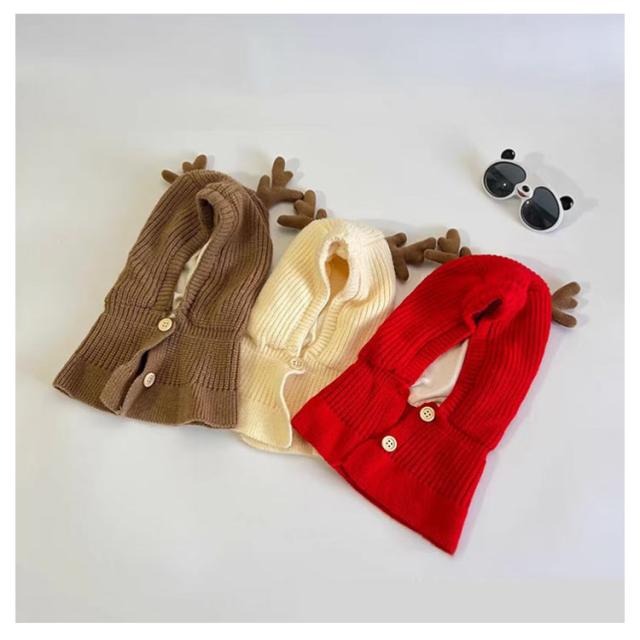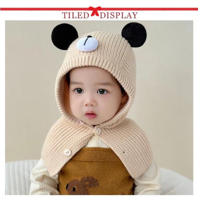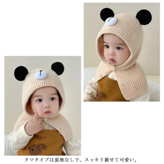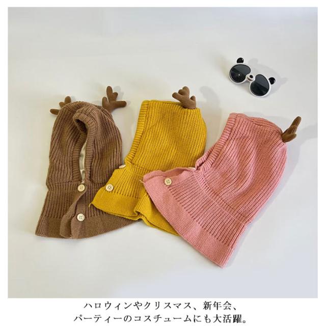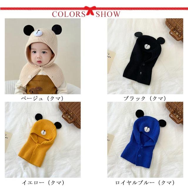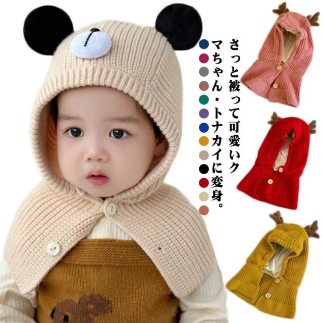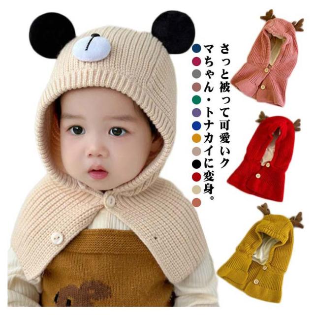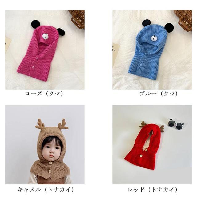 女の子 赤ちゃん ニット帽 耳付き ニット帽 フード付き バラクラバ トナカイ くま耳 男の子 付けフード 付け襟 目出し帽 フードウォーマー ベビー マフラー スヌード ケープ マント ポンチョ 帽子 寒さ対策 雪遊び