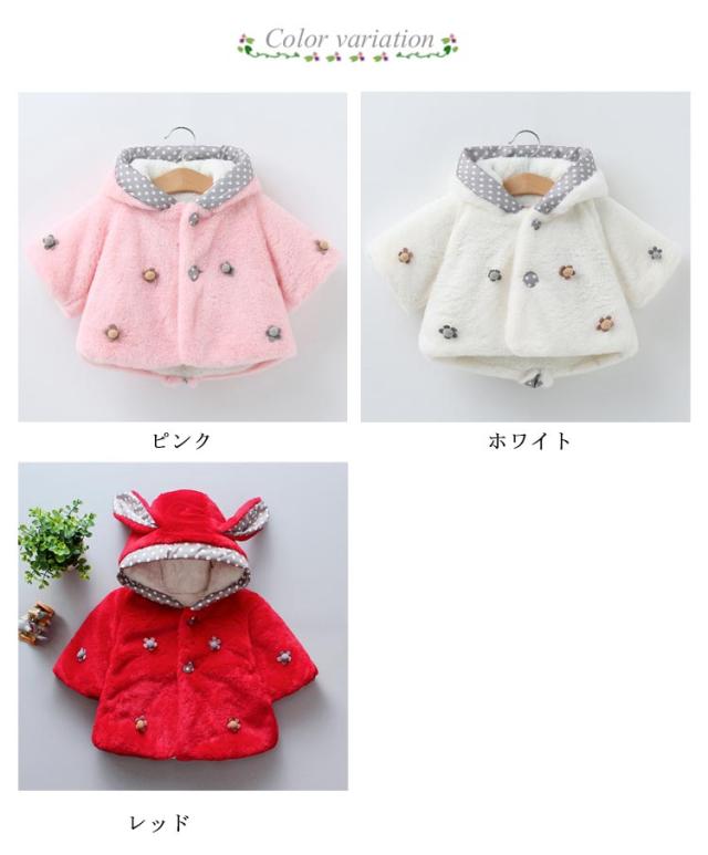 ベビー マント ジャケット ポンチョ コスプレ 長袖 ベビー コスチューム 可愛い クリスマス 裏起毛 ボア 新年 子供用 ウサギ 帽子付き ジャケット 厚手 ケープ 仮装 衣装 キッズ 子供 ベビー 秋冬 プレゼント 70-100cm