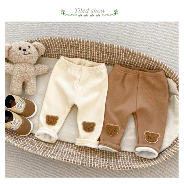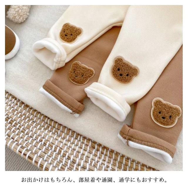 くま 秋服 キッズパンツ ズボン 冬服 長ズボン ロングズボン キッズパンツ あったかい 防寒 柔らかい 可愛い ボトムス 保温 子供服 キッズ 裏起毛 おしゃれ 無地 シンプル ベヒー 子ども服 男の子 女の子 66 73 80 90 100