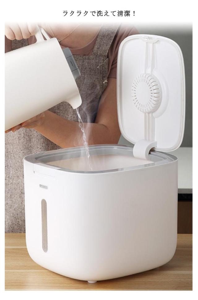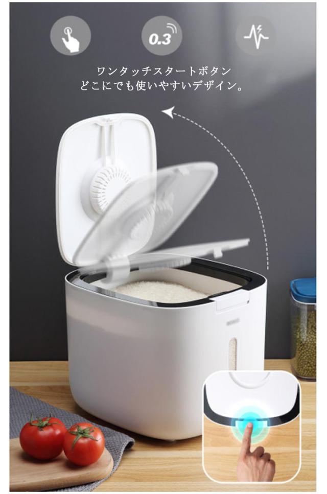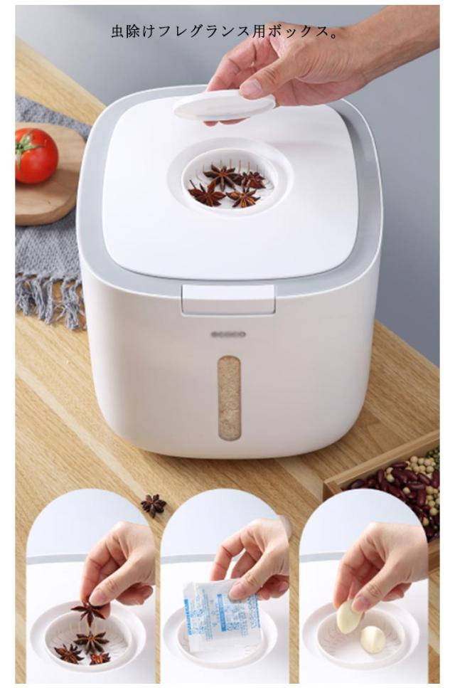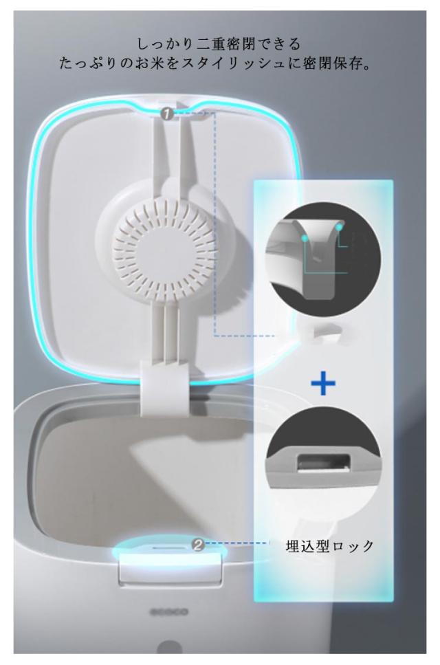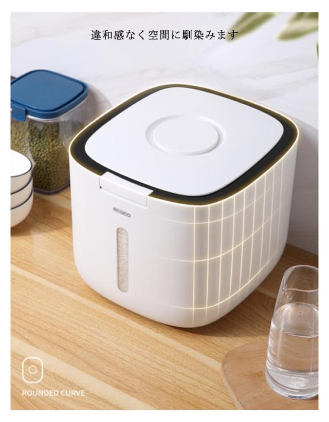 | こめびつ 5kg用 ワンタッチスタートボタン どこにでも使いやすいデザイン。 しっかり二重密閉できる たっぷりのお米をスタイリッシュに密閉保存。 埋込型ロック カチッと閉めて、湿気や酸化からお米を守る密閉性。 違和感なく空間に馴染みます ラクラクで洗えて清潔! 虫除けフレグランス用ボックス。 | |