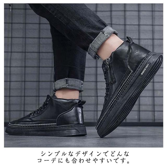ブーツ サイドジップ 防寒 合皮 ショートブーツ レザー調 レースアープブーツ ハイカットスニーカー 革靴 裏起毛 保温 スニーカー 暖かい 極暖 スノーシューズ 冬靴 カジュアルシューズ 防寒靴 スニーカー 編み上げブーツ ブラック ブラウン