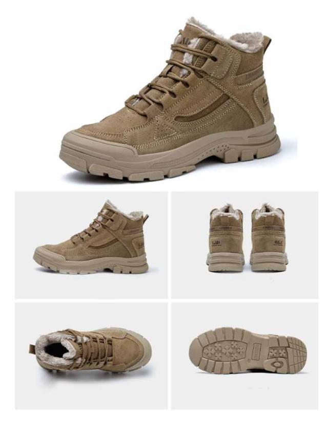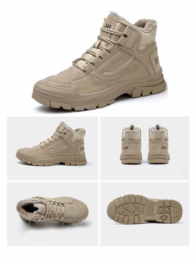 裏起毛 ウィンターブーツ ハイカットスニーカー 保温 暖かい ショートブーツ 秋冬 防寒 メンズ ブーツ ワークブーツ スニーカー 冬靴 スノーシューズ レースアープ 厚底 極暖 カジュアルシューズ 防寒靴 作業靴 ベージュ ブラウン 大きいサイズ