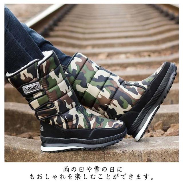 | コーディネートを邪魔しないシンプルでタイリッシュなデザインのスノーブーツ。(無地&迷彩柄) アッパー部分は完全防水になっており、異素材の組み合わせが立体感と高級感を演出。 裏ボアに仕立てた、暖かな穿き心地で冬の相棒にぴったりの1着。 マジックテープ式なので、履き脱ぎはとても便利! もちろんデザインだけでなく撥水機能付きの優れたアイテムです。 雨の日や雪の日にもおしゃれを楽しむことができます。 | |