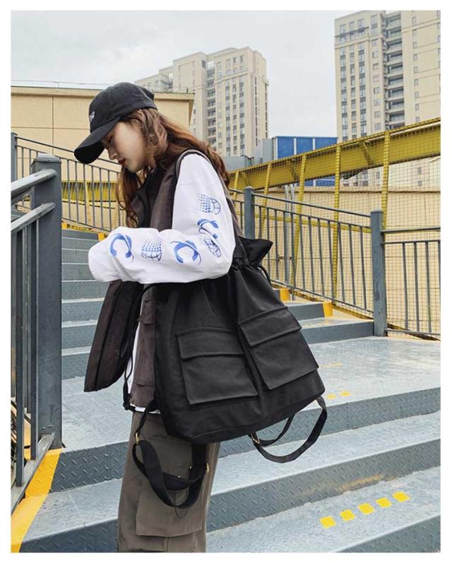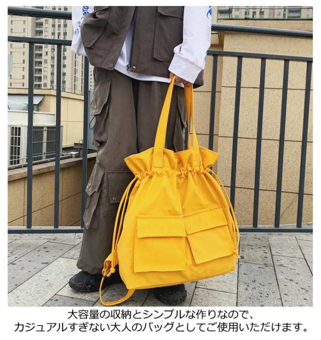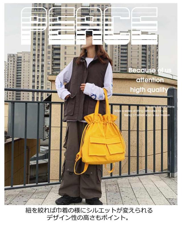 | 実用性とデザイン性を兼ねそろえた2WAYリュックサック。 リュックとして背負うだけでなく、トートバッグとして。スタイルや好みに合わて持ち方を変えられます。 入り口が大きく開くため、中の荷物の出し入れがスムーズ。 紐を絞れば巾着の様にシルエットが変えられるデザイン性の高さもポイント。 大容量の収納とシンプルな作りなので、カジュアルすぎない大人のバッグとしてご使用いただけます。 男女問わず使えるシンプルなデザイン。プライベートはもちろんビジネスシーンにも最適。 | |