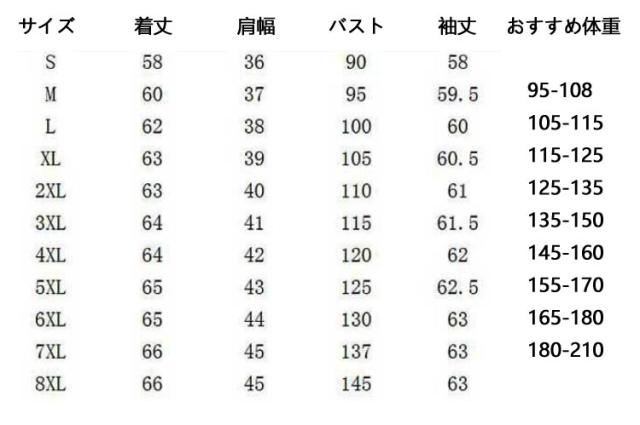 | サイズ | S M L XL 2XL 3XL 4XL 5XL 6XL 7XL 8XL |