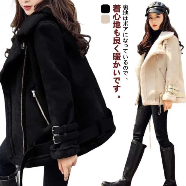 ショート丈 フェイクムートン コート ライダース レディース ボア フェイクムートンコート アウター ファー コート ムートンコート ボアコート 厚手 防寒 暖かい 裏起毛 裏ボアコート 大人 あったか 冬物 ムートンコート 秋冬 冬コート 30代 40代