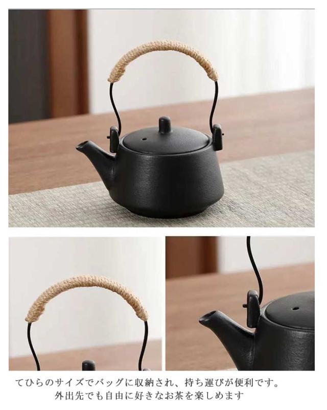| ひもが絡み合って持ちやすく、手当たり次第に力が入らない小さなやかんの口です 外壁に黒石釉薬をかけて、スクラブ質感が落ち着いています 忙しい日々からちょっと息を抜いて、お茶を飲みながら、心を癒します 中国の伝統工芸が美しくて、伝統技術も優れています ホームだけでなく、オフィス、旅行、キャンプ、茶屋、茶道教室なども利用できます てひらのサイズでバッグに収納され、持ち運びが便利です。外出先でも自由に好きなお茶を楽しめます | |