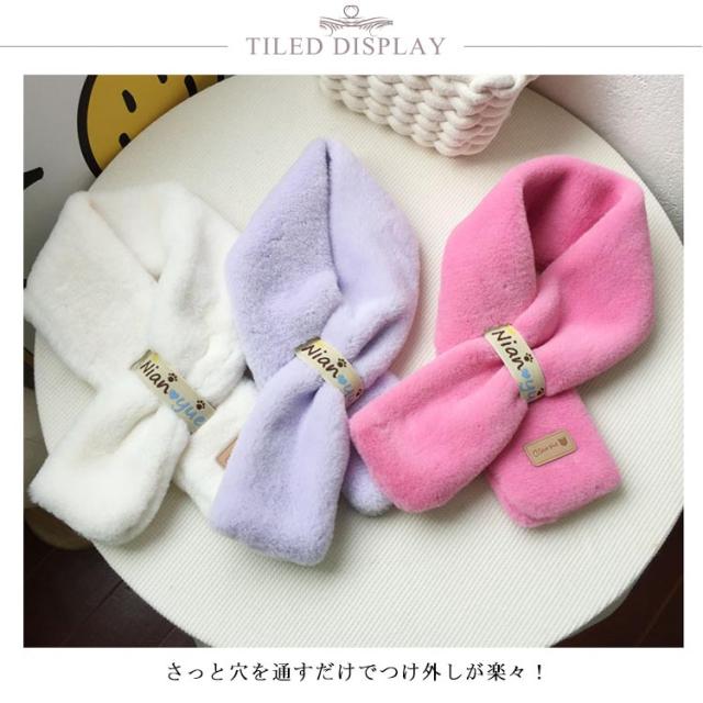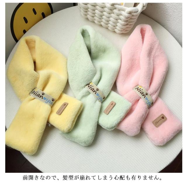 | キッズ用ふわふわぽんぽん付きマフラー。 さっと穴を通すだけでつけ外しが楽々! 前開きなので、髪型が崩れてしまう心配も有りません。 肌に触れるファーがふんわりしっとり…ずっとつけていたくなる気持ちよさです。 | |