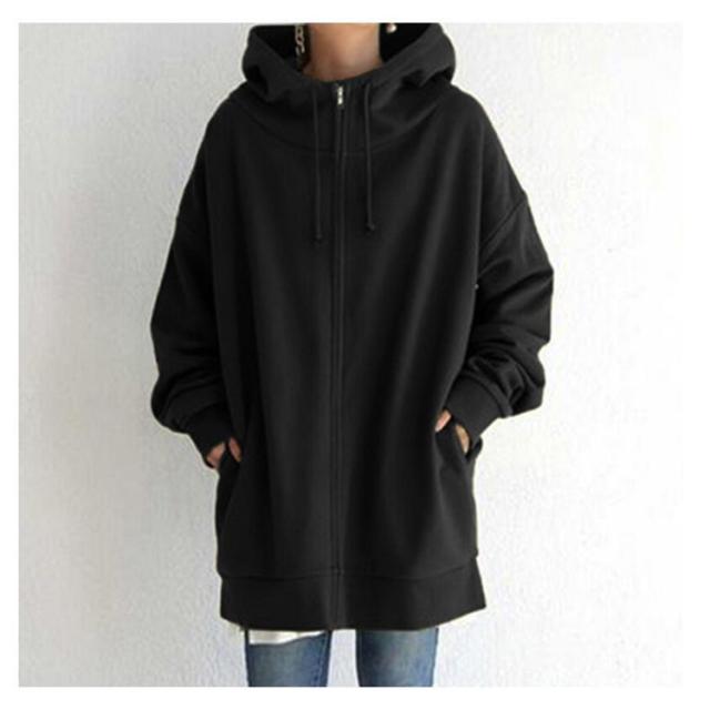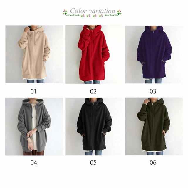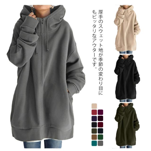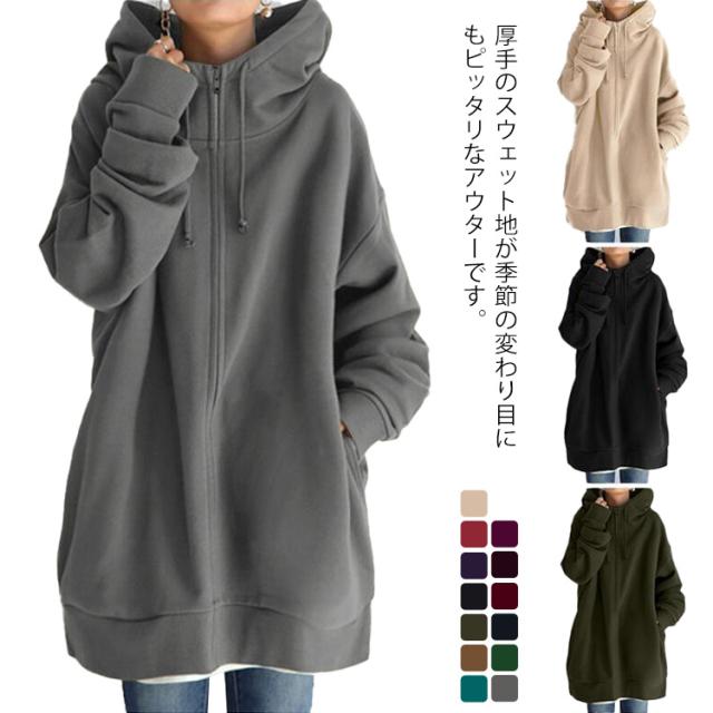 ジップアップパーカー フード付き コート ロング丈 レディース ボリュームカラー ロングパーカー 裏起毛 アウター ロングコート 裏起毛 大きサイズ 暖かい 春 秋 冬