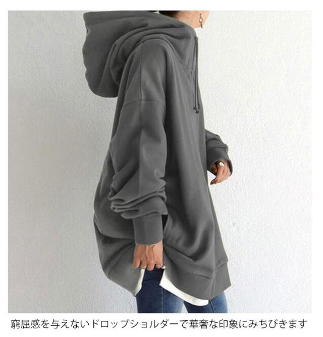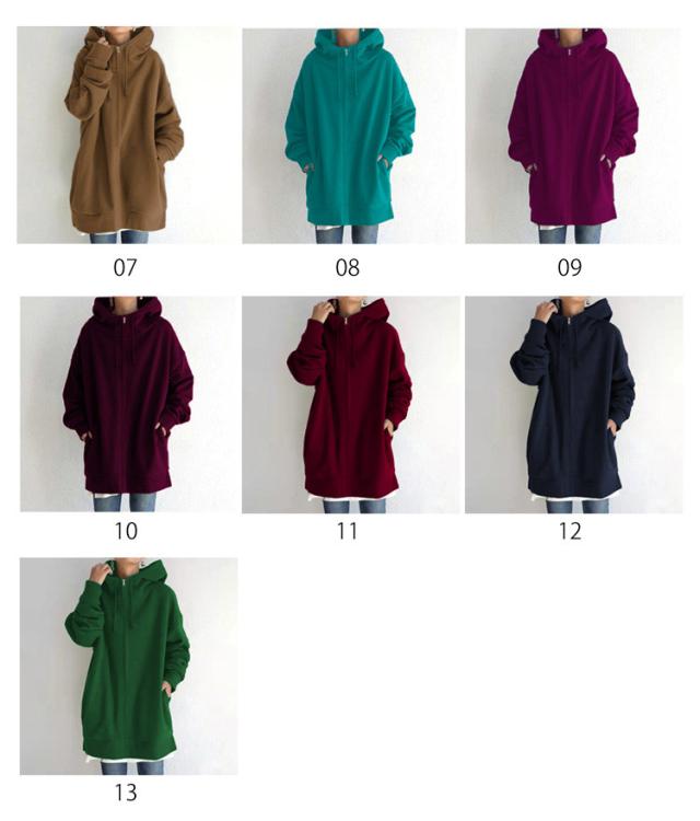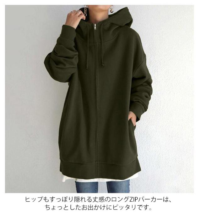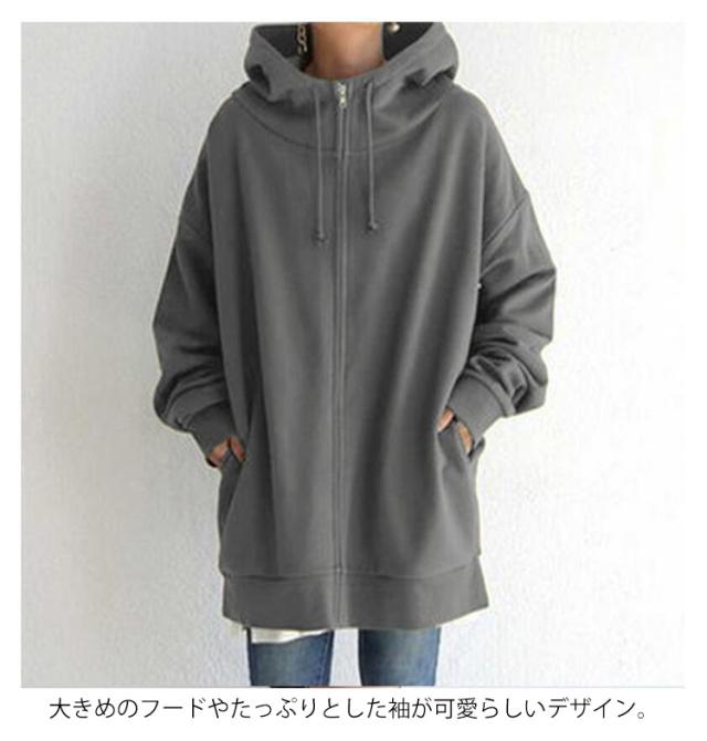 | 厚手のスウェット地が季節の変わり目にもピッタリなアウターです。 ゆったりしたシルエットで、リラックスしたコンフォートな雰囲気です。 大きめのフードやたっぷりとした袖が可愛らしいデザイン。 裏起毛生地でしっかり暖かく、フードもついているので首元の寒さ対策もばっちり◎ 窮屈感を与えないドロップショルダーで華奢な印象にみちびきます ヒップもすっぽり隠れる丈感のロングZIPパーカーは、ちょっとしたお出かけにピッタリです。 | |