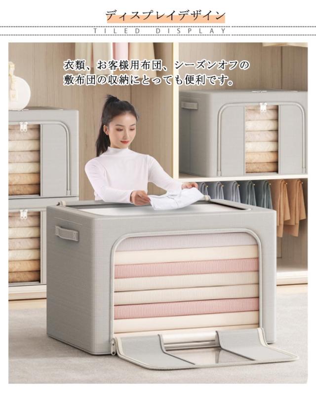 | 【商品名】布団収納ケース 【サイズ】 24L(40*30*20cm) 66L(50*40*33cm) 【素材】オックスフォード布、メタルワイヤー 【特徴】 水洗いOK! 透明窓付き・窓なしの布団収納袋のご紹介です。 衣類、お客様用布団、シーズンオフの敷布団の収納にとっても便利です。 メタルワイヤーで自立するのでとっても便利です。 積み重ねて使用できるので、収納場所も無駄なく使うことができます。 上から、前から2方向取り出しも楽ちん♪ ダブルファスナー式ですので中身の出し入れが簡単です。 持ち手がついているので、持ち運びに便利。 使わないときはコンパクトに折りたためるので、わずかな隙間に収納可能。 北欧風はもちろん、和モダン、カフェ風、洋室、和室にも似合うオシャレな収納ボックス。 | |