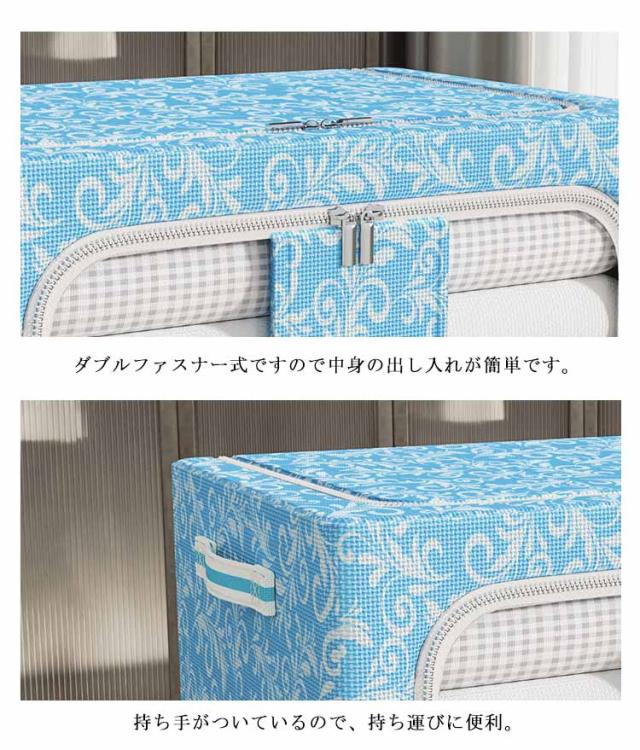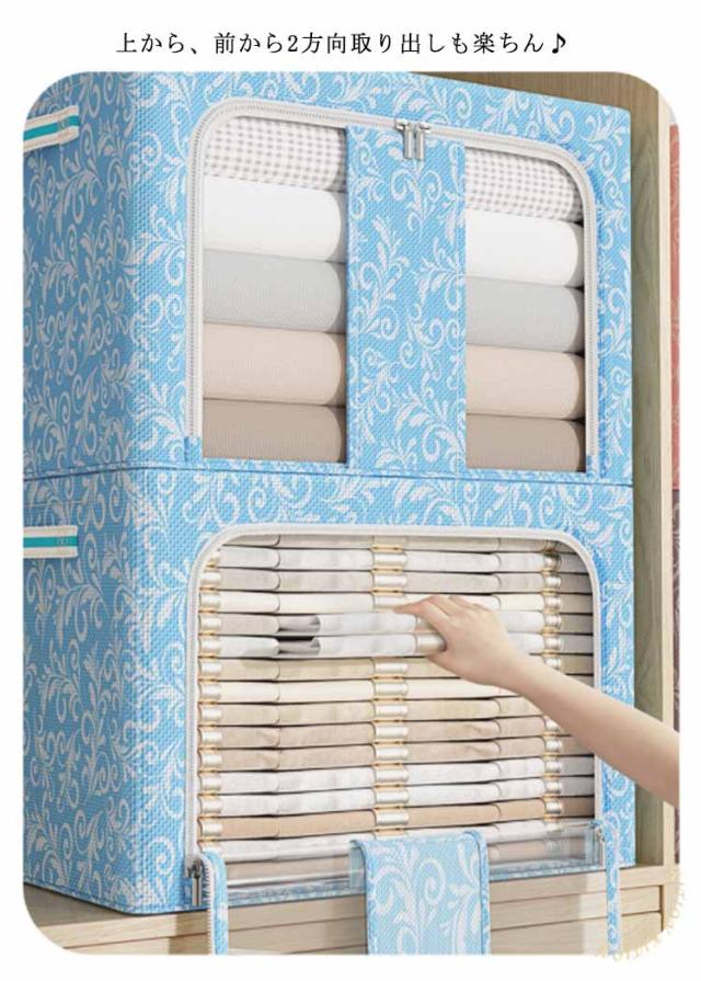 | 【商品名】布団収納ケース 【サイズ】 100L(60*42*40cm) 【素材】オックスフォード布、メタルワイヤー 【特徴】 透明窓付き布団収納袋のご紹介です。 ほこり・湿気から守る! 衣類、お客様用布団、シーズンオフの敷布団の収納にとっても便利です。 メタルワイヤーで自立するのでとっても便利です。 積み重ねて使用できるので、収納場所も無駄なく使うことができます。 上から、前から2方向取り出しも楽ちん♪ ダブルファスナー式ですので中身の出し入れが簡単です。 持ち手がついているので、持ち運びに便利。 使わないときはコンパクトに折りたためるので、わずかな隙間に収納可能。 北欧風はもちろん、和モダン、カフェ風、洋室、和室にも似合うオシャレな収納ボックス。 | |