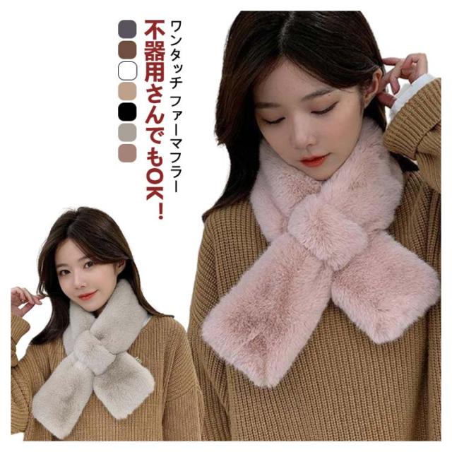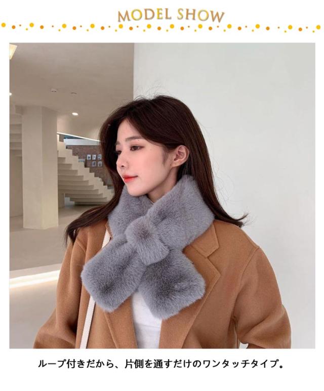| ワンタッチ ファーマフラー 不器用さんでもOK! ループ付きだから、片側を通すだけのワンタッチタイプ。 秋冬コーデの主役になる存在感。 顔周りがパッと華やぐファーマフラー。 | |
