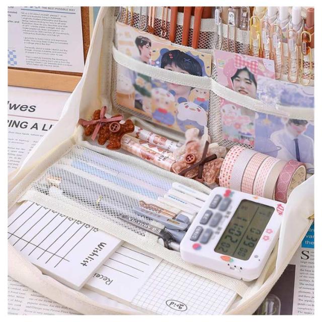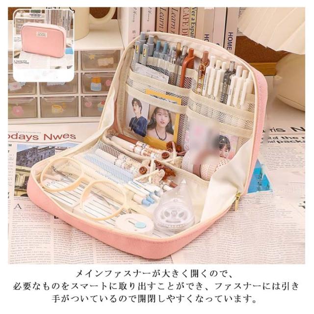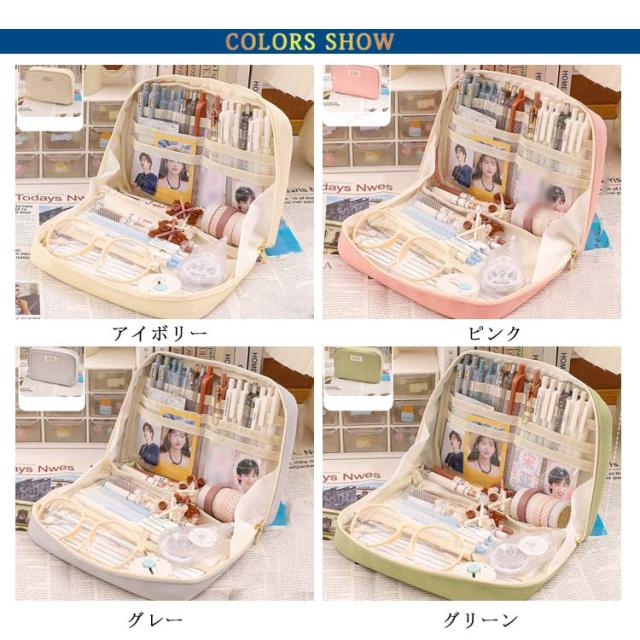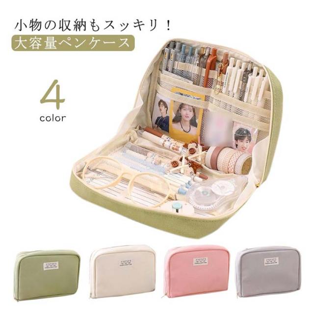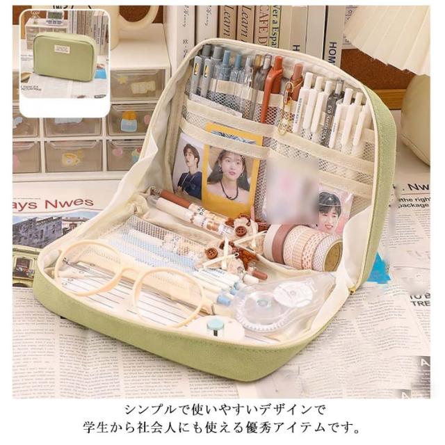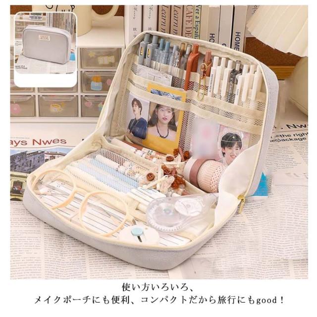 仕切り ペンケース 仕切り 大容量 筆箱 韓国 ペン入れ 収納 文房具 かわいい ツールペンケース コスメポーチ ファスナー 中学生 コスメ 収納ポーチ 90°開き 帆布 ふでばこ 女子 高校生 ふで箱 きれいめ おしゃれ 社会人 卒業 入学 誕生日 ギフト 小物入れ