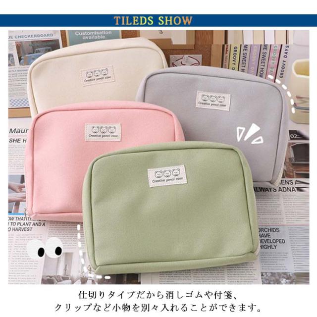 | 小物の収納もスッキリ!大容量ペンケース 仕切りタイプだから消しゴムや付箋、クリップなど小物を別々入れることができます。 丈夫で厚手な生地を使用、長くご愛用頂けます メインファスナーが大きく開くので、必要なものをスマートに取り出すことができ、ファスナーには引き手がついているので開閉しやすくなっています。 使い方いろいろ、メイクポーチにも便利、コンパクトだから旅行にもgood! シンプルで使いやすいデザインで学生から社会人にも使える優秀アイテムです。 | |