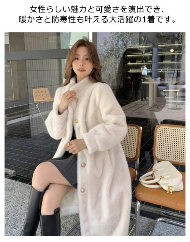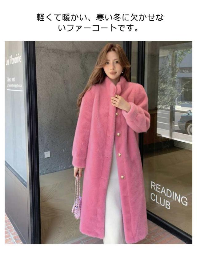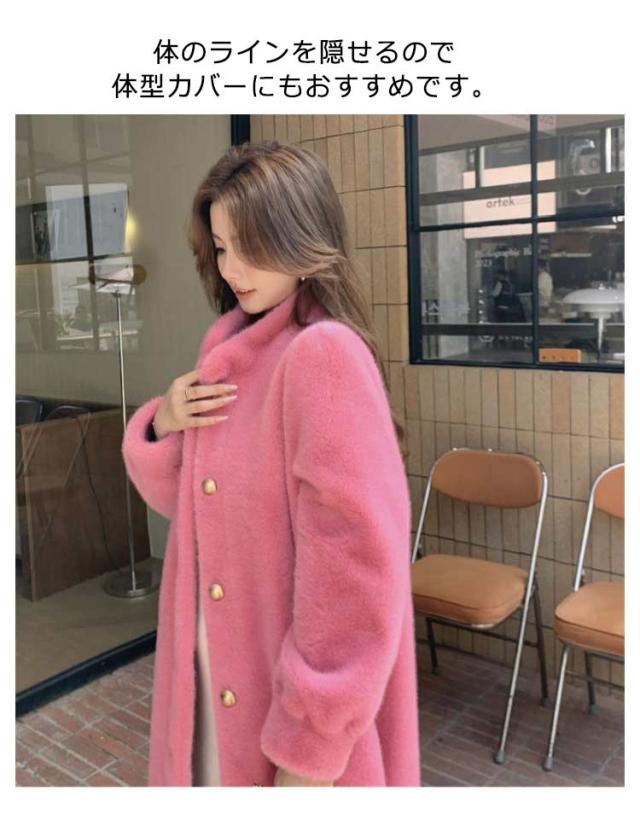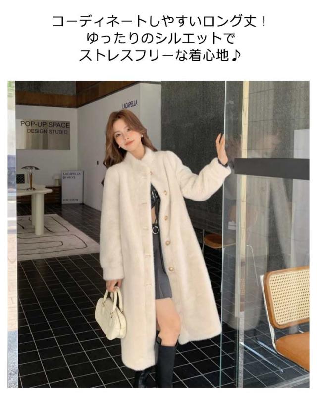 フェイクファー スタンドカラー 暖かいボリュームファージャケット ファーコート フェイクファー もふもふ 冬 ロング丈 ファーコート レディース カジュアル 暖かい もこもこ ロングコート かわいい アウター ポケット付き 大人女性 可愛い 体型カバー プレゼント ギフト
