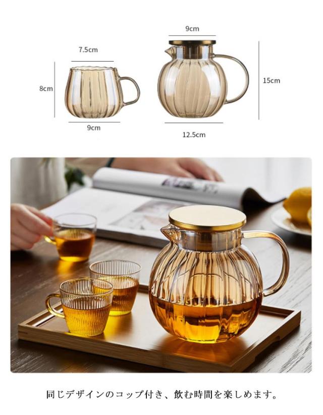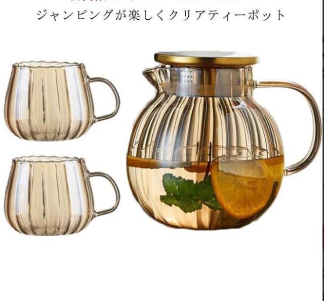 ティーポット 耐熱ガラス ガラス製ポット 1200ml 大容量 直火対応 急須 カボチャ 可愛い クリア ガラス 工芸茶 カボチャデザイン 紅茶 フルーツティー リーフティー 花茶 ティーフォーツー 家庭用 コップ付き 透明 引っ越し祝い プレゼント ギフト 送料無料