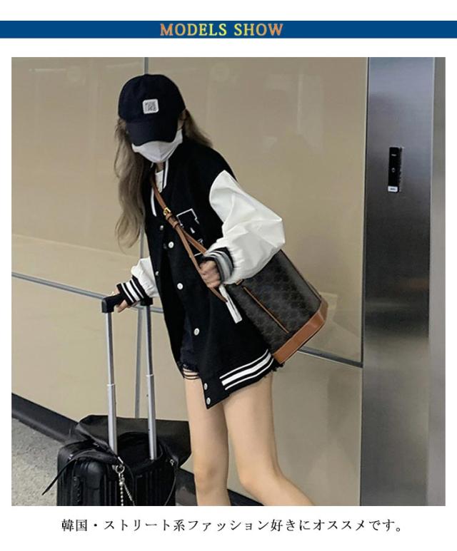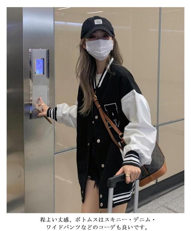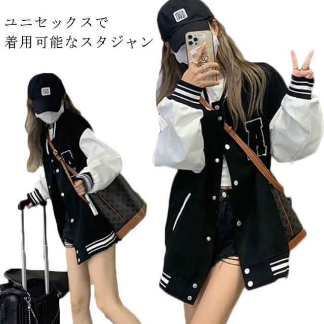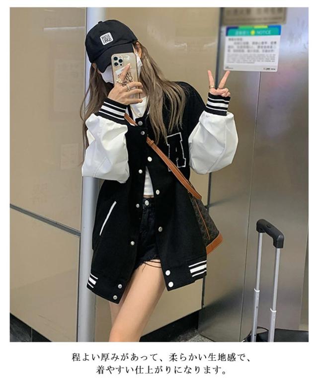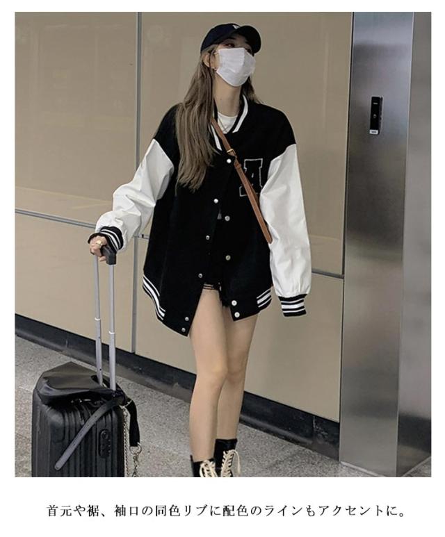 スタジャン レディース カジュアル スタジャン ゆったり 切り替え ビッグシルエット ジャンパー ブルゾン おしゃれ スタジアムジャンパー カッコイイ ライン オーバーサイズ スタジャン カレッジジャケット