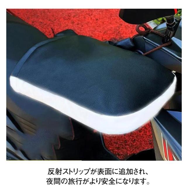 | バイク用ハンドルウォーマー【防寒・防風・防水】 PUレザー素材でできており、耐摩耗性、防水性、お手入れが簡単です。 反射ストリップが表面に追加され、夜間の旅行がより安全になります。 快適で便利で、ブレーキに影響を与えません。開口部の強力な引きひもとマジックテープデザインにより、工具なしで一体型手袋の取り付けまたは取り外しが可能です。 ほとんどのオートバイ、マウンテンスクーター、電動自転車に適しています。 | |