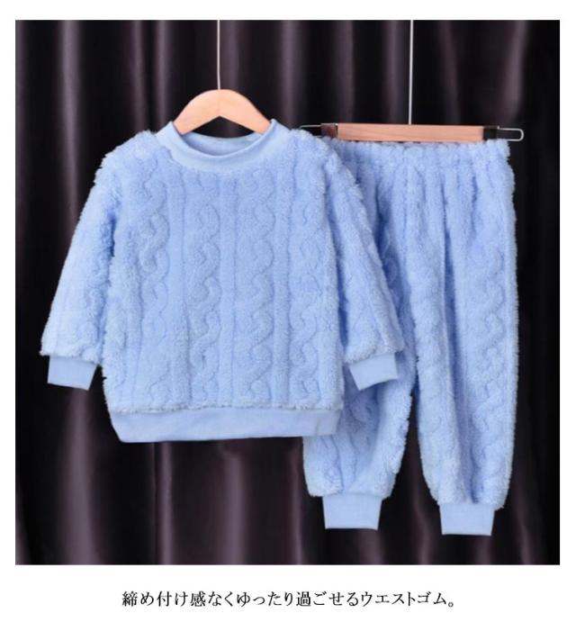 パジャマ キッズ 長袖 長ズボン 冬 子供 トップス ボトムス パンツ 2点セット フランネルパジャマ 秋冬 ルームウェア 男女兼用 部屋着 防寒 保温 冷え対策 ナイトウェア かわいい おしゃれ もこもこ ウエストゴム 厚手 無地 男の子 女の子 送料無料