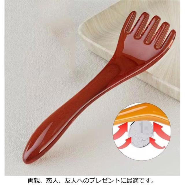 | 表面は磨かれ、滑らかで丸みの頭皮マッサージ器。 首や頭など様々な部分をマッサージできます。 マッサージ効果を高めるため、櫛の歯は少し硬めですが、丸みデザインなので頭皮を傷つけません。 操作が簡単、頭皮や頭、掻き出しやマッサージに使用することができます。 両親、恋人、友人へのプレゼントに最適です。 | |