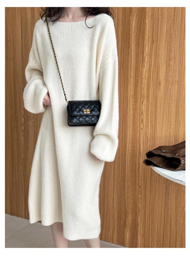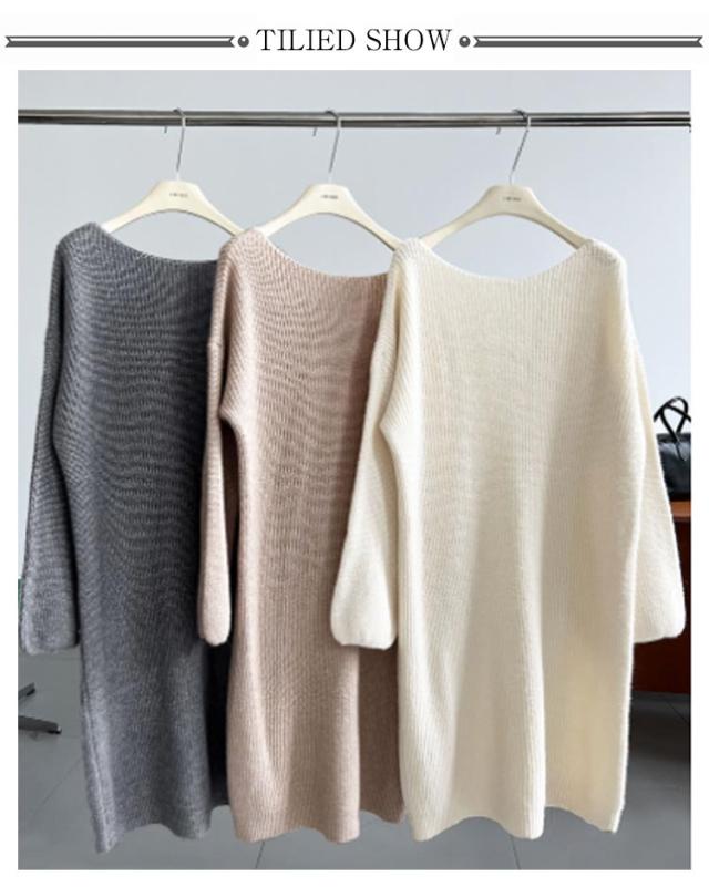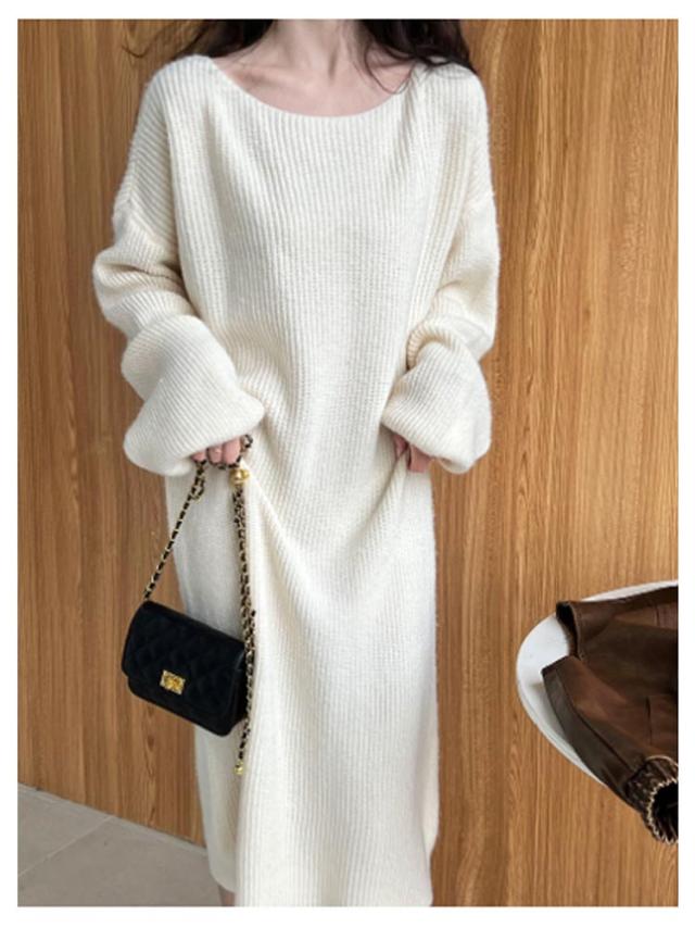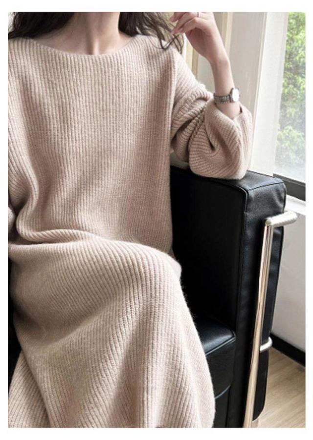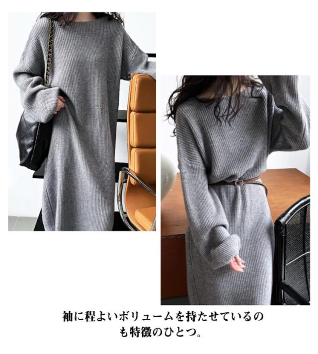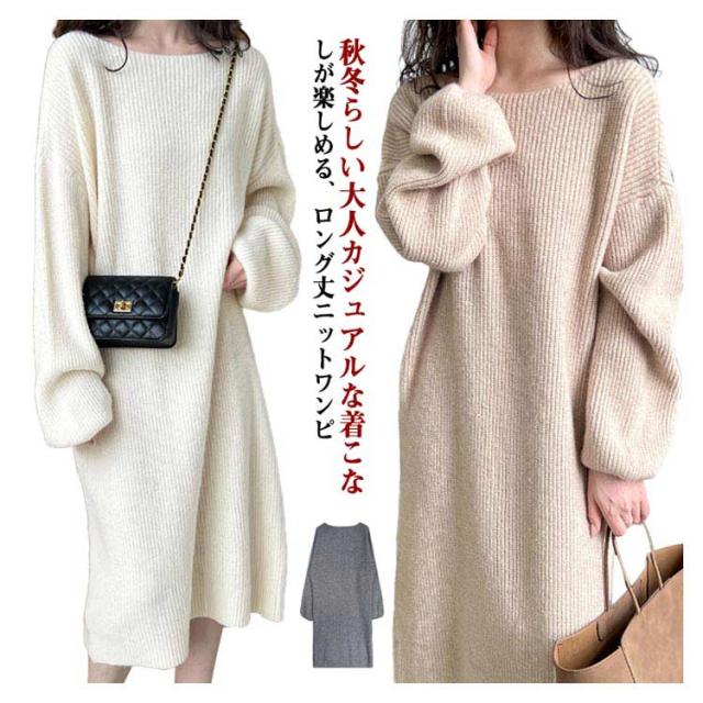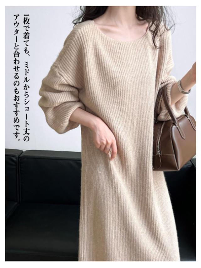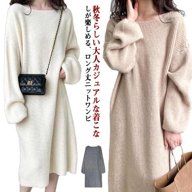 マキシ丈 上品 ニットワンピース レディース ロング 柔らかい ボートネック フリーサイズ ニットワンピース 長袖 シンプル 通勤 通学 冬