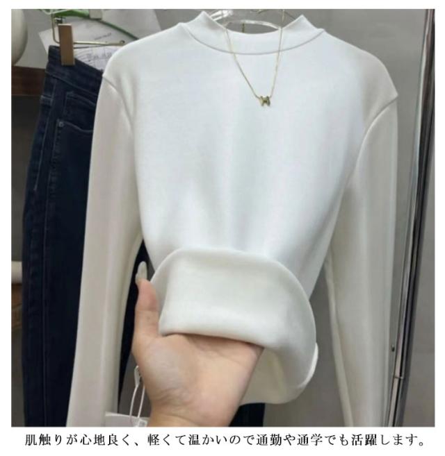 | 裏起毛 さらりとした肌触りの厚手のカットソー素材で太めのブに表情があり、上品な質感。 程よい厚みの裏起毛。寒い冬でもオシャレしながら曖かく過ごせます。 シンプルなデザインなので、 スカートにもパンツにも合わせやすい! 肌触りが心地良く、軽くて温かいので通勤や通学でも活躍します。 またジャケットなどのインナーにもおすすめ。 | |