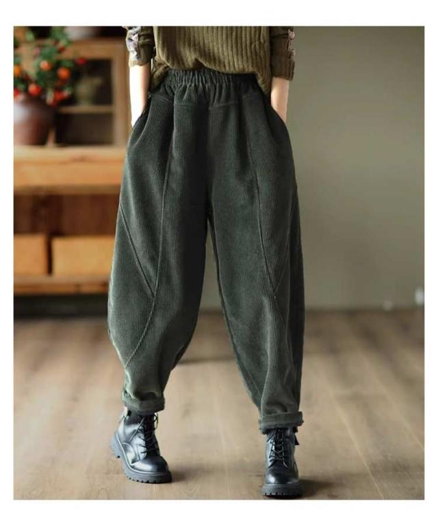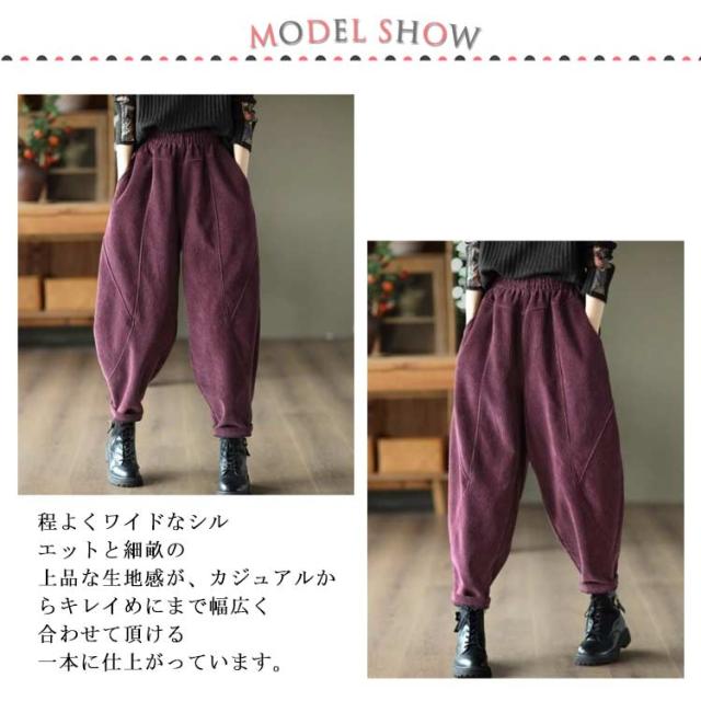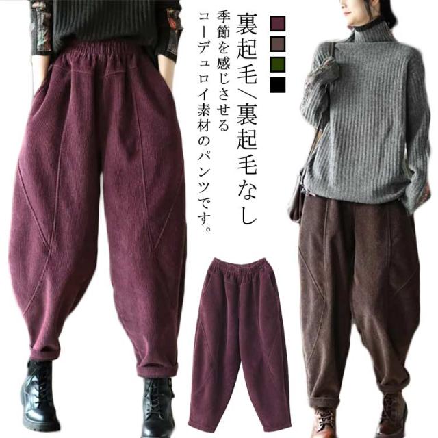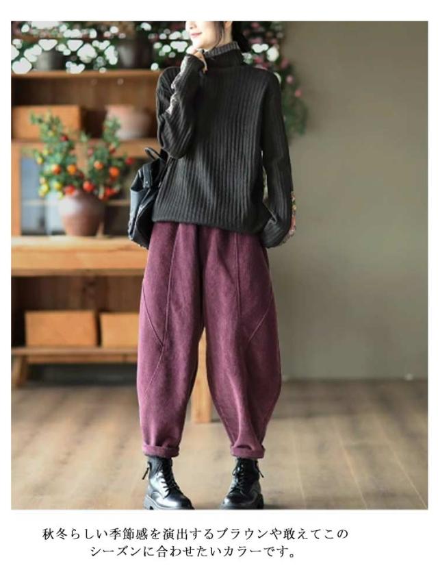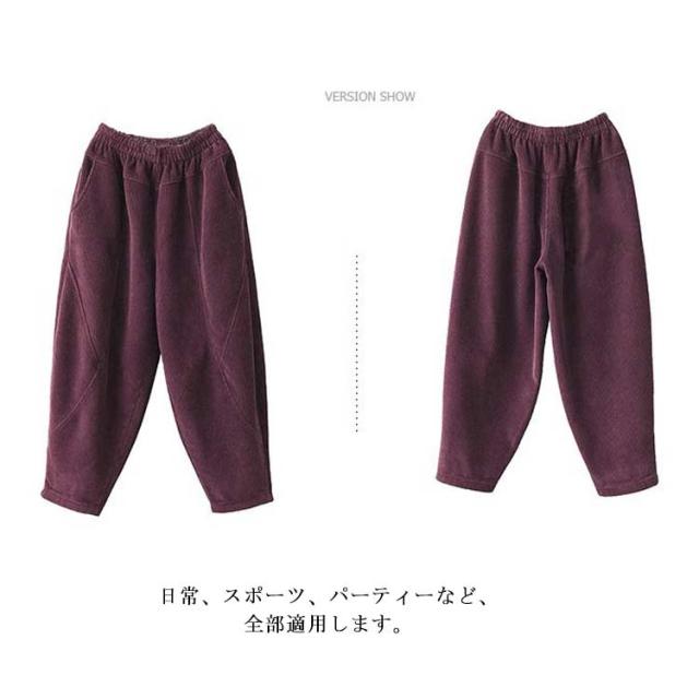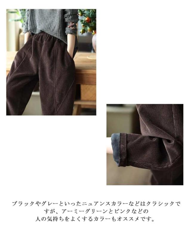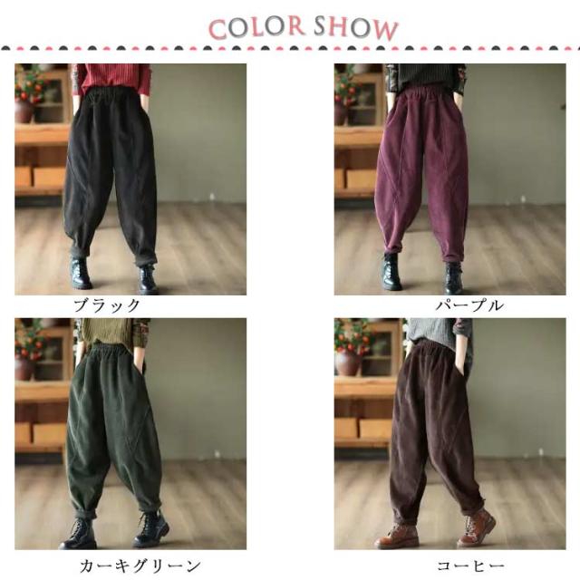 コーデュロイ クロップドパンツ ゆったり テーパードパンツ サルエルパンツ 裏起毛 レディース パンツ 秋冬 ジョガーパンツ 裏ボアパンツ 無地 ワイドパンツ ボトムス 大きいサイズ 暖かい 快適 コーデュロイ 着痩せ シンプル カジュアル