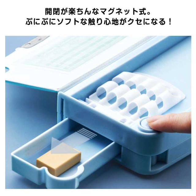 | 機能性はバッチリなので大活躍間違いなし。鉛筆削り付き大容量な筆箱 鉛筆5本・消しゴムが所定の位置にきっちり収まる2つの扉を配置 開閉が楽ちんなマグネット式。ぷにぷにソフトな触り心地がクセになる! 大容量でテーブルの上で散らばりそうな小物も、一気におしゃれに片付きます。 文房具が一目瞭然で、分かりやすく使いやすい!消しゴム、安全ハサミ、定規、テープ、鉛筆削り、時間割表があいります! 入学の準備に!入学のお祝いに!誕生日プレゼントなどプチギフトにも! | |