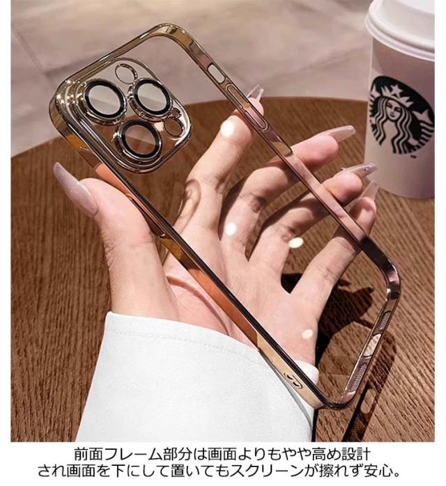 | レンズフィルム一体型設計!ケース1つで全面保護! これ1つでiPhone本体とカメラ部分をしっかり守ってくれるスマホケース。 上品で飽きのこないシンプルなデザイン、メッキ加工とクリアバックで、iphone本来の美しさをより一層演出し、「大人かっこいい」を実現。 装着感ゼロの薄さ、本体にぴったりフィットし、スリムで握りやすい。 カメラレンズまでフルカバー、カメラレンズを傷からしっかりと全面保護。 前面フレーム部分は画面よりもやや高め設計され画面を下にして置いてもスクリーンが擦れず安心。 背面は高透過率、黄変しにくいPC素材で、いつまでもキレイなまま、アイフォンのアイコンを魅せ、よりスタイリッシュに本体のデザインを活かせるケースです。 四つの角にはエアクッション内蔵されており、落下の衝撃を吸収し、本体へのダメージを最小限に。 表面はコーティングが施されているので、手触りがよく、擦り傷・汚れ・油に強く、指紋の付着を防止します。 スピーカー部分は防塵ネット設計され、ほこりの侵入を防ぎながら、音声への影響がありません。 | |