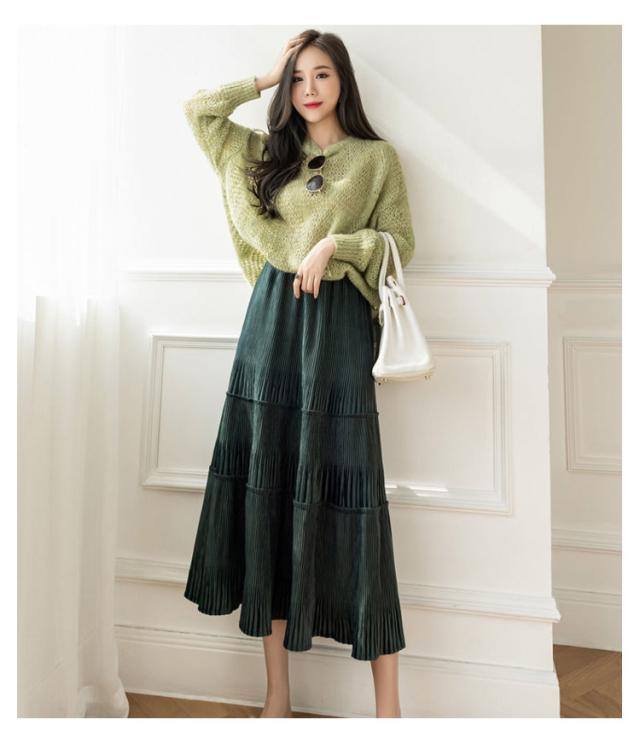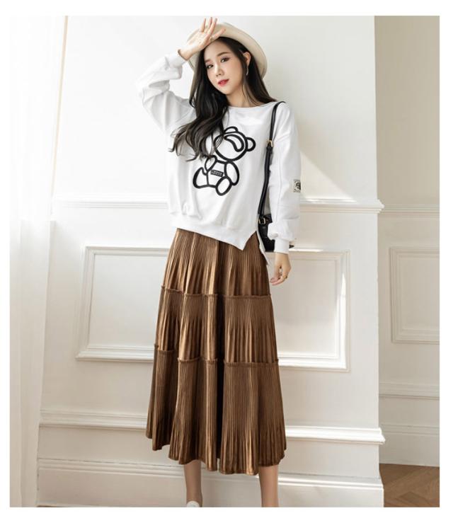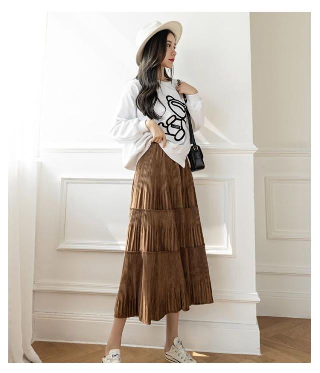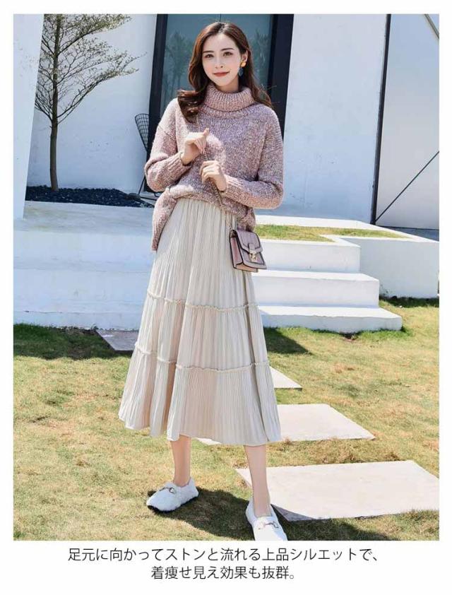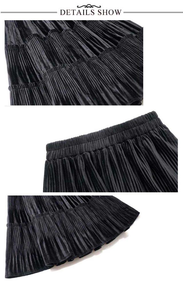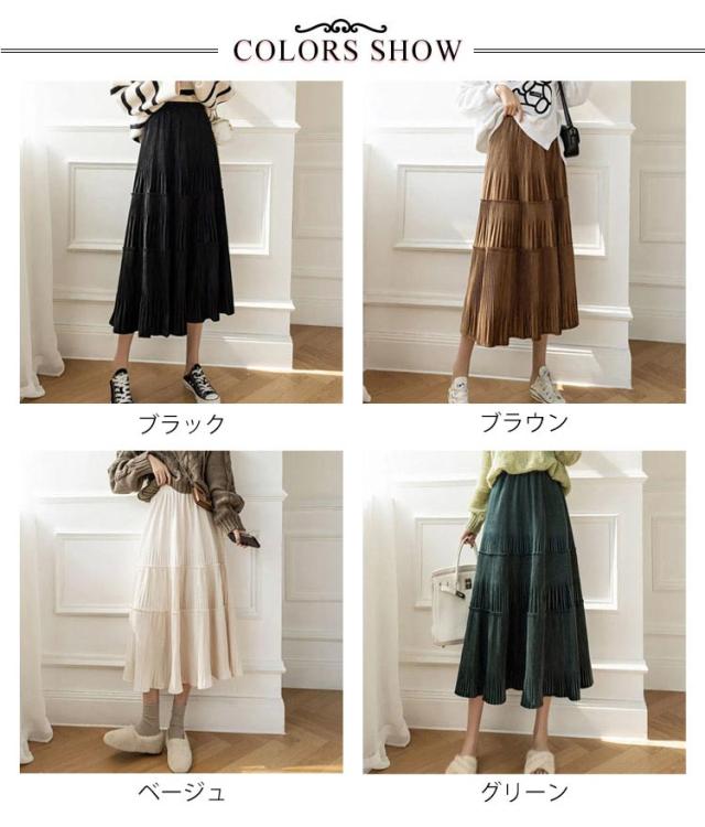 切り替え ベロア レディース プリーツ プリーツスカート ティアードスカート ベロアスカート シンプル ベロア ボトムス ティアード スエード ミモレ丈 無地 大人 体型カバー フレア ウエストゴム 送料無料